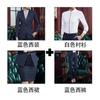 966-1 blue striped coat + white lining + blue pants + blue skirt