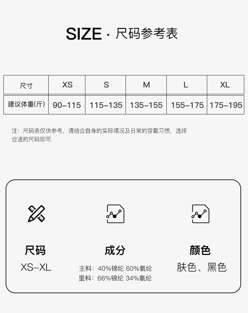 Xs【 45-57.5kg 】, S【 57.5-67.5kg 】, M【 67.5-77.5kg 】, L【 77.5-87.5kg 】, Xl【 87.5-97.5kg 】