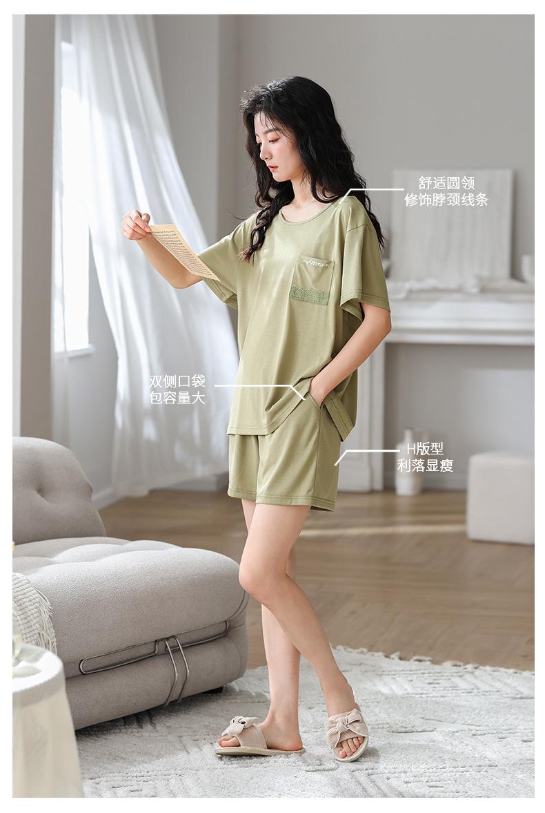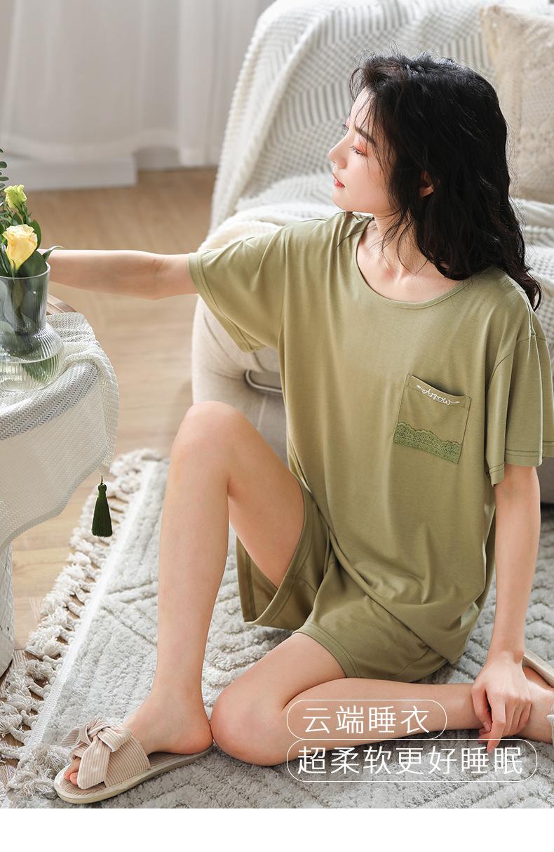 Pijamas de modal para mujer, pantalones cortos finos de verano de manga corta, conjunto de ropa informal de seda helada para el hogar.