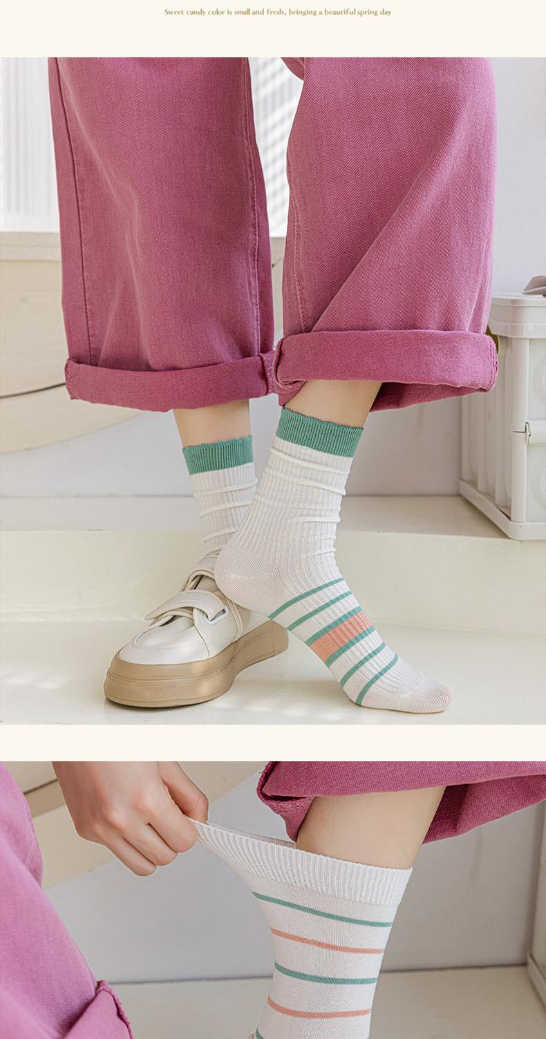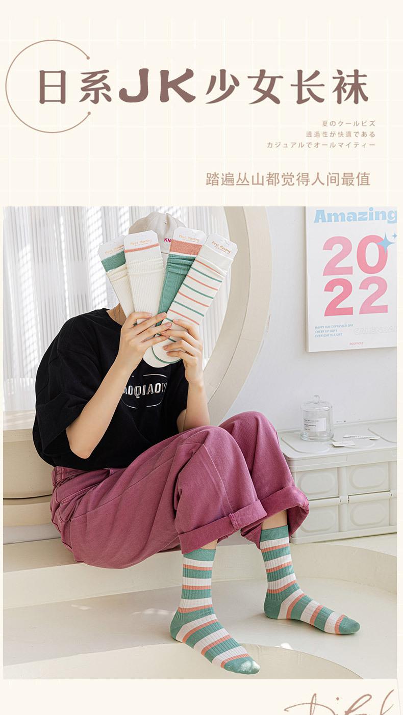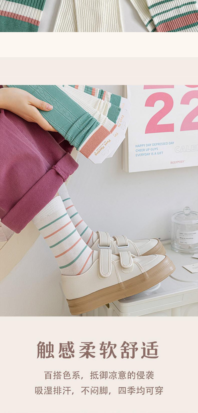 Calcetines Rectos Calcetines de Media Caña para Mujer Primavera y Verano a Rayas Pequeños Frescos Calcetines Finos Ins Modernos Preppy Exterior Calcetines de Algodón