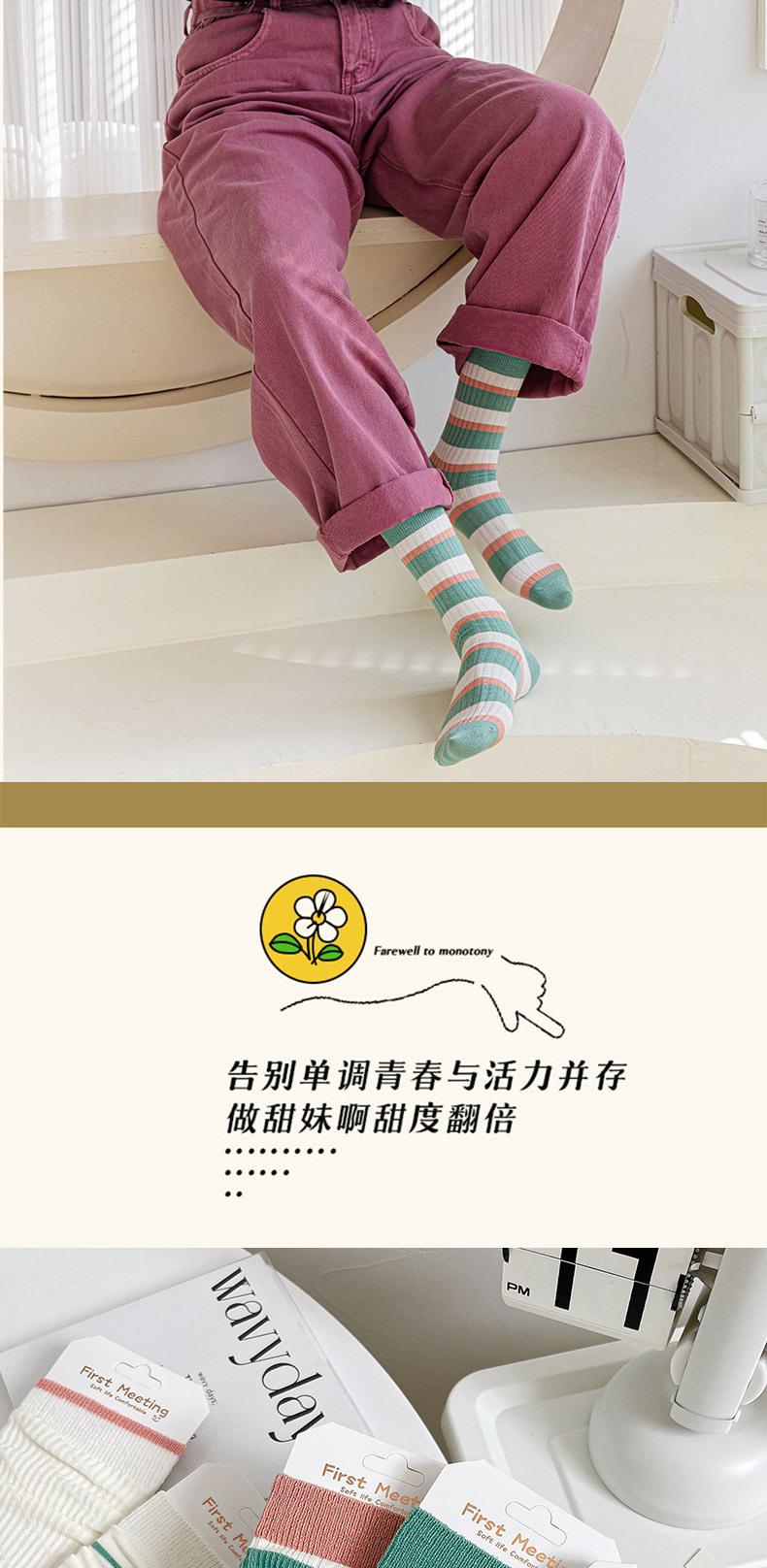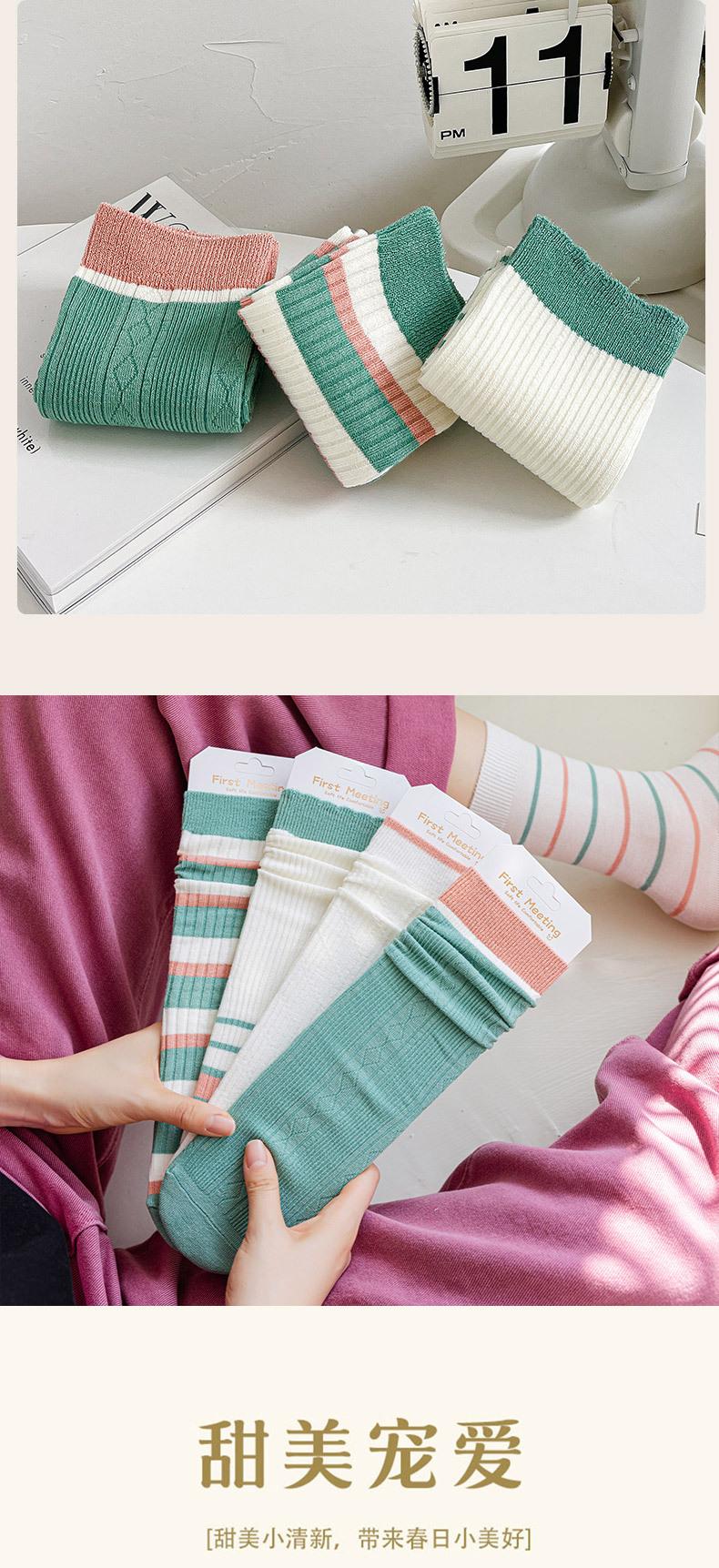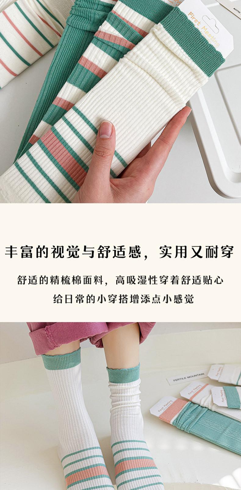 Calcetines Rectos Calcetines de Media Caña para Mujer Primavera y Verano a Rayas Pequeños Frescos Calcetines Finos Ins Modernos Preppy Exterior Calcetines de Algodón