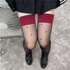Onda punto amor rojo medias laterales mujer puro sexy calcetines hasta la rodilla medias negras de seda calcetines rojos hasta el muslo