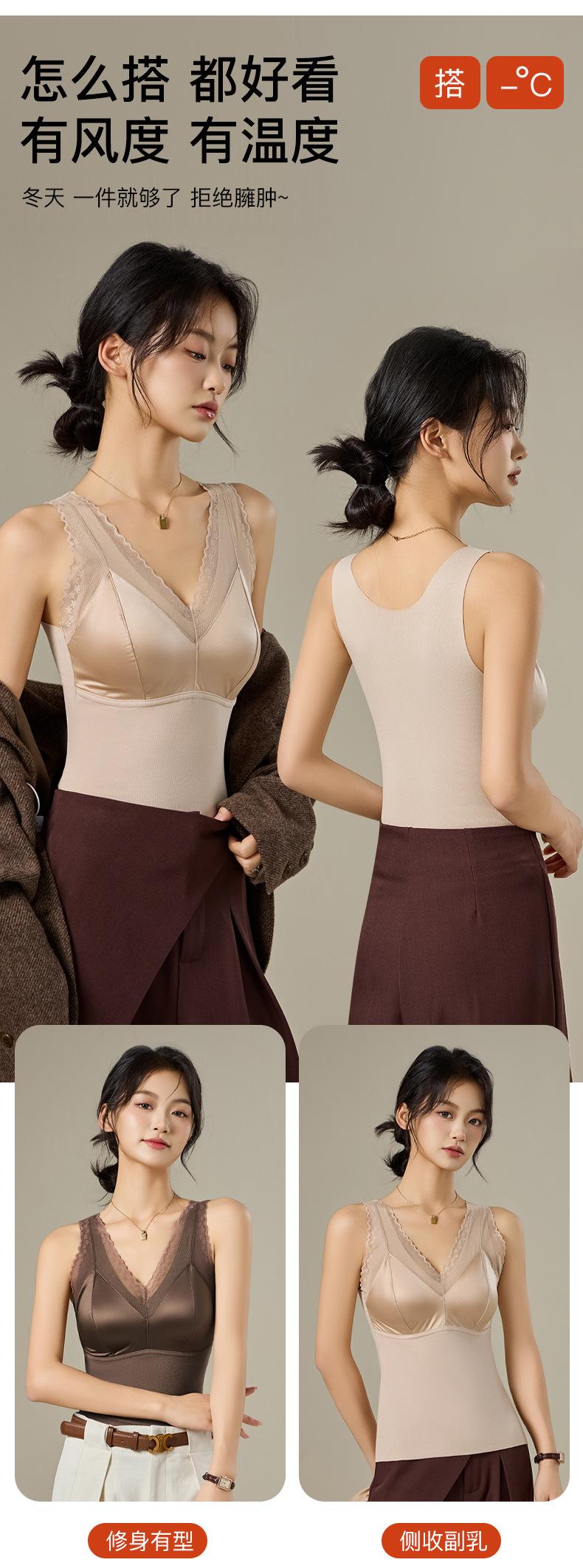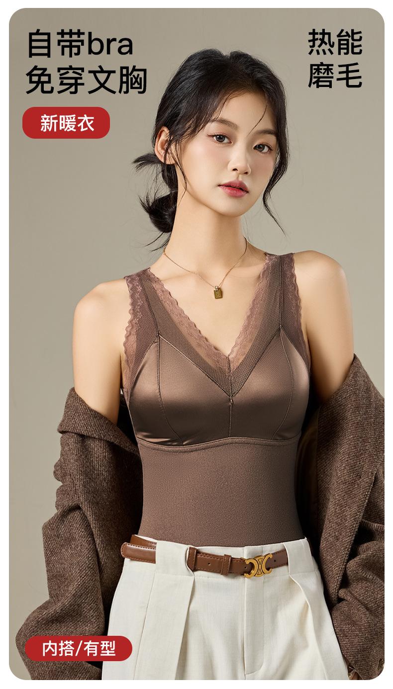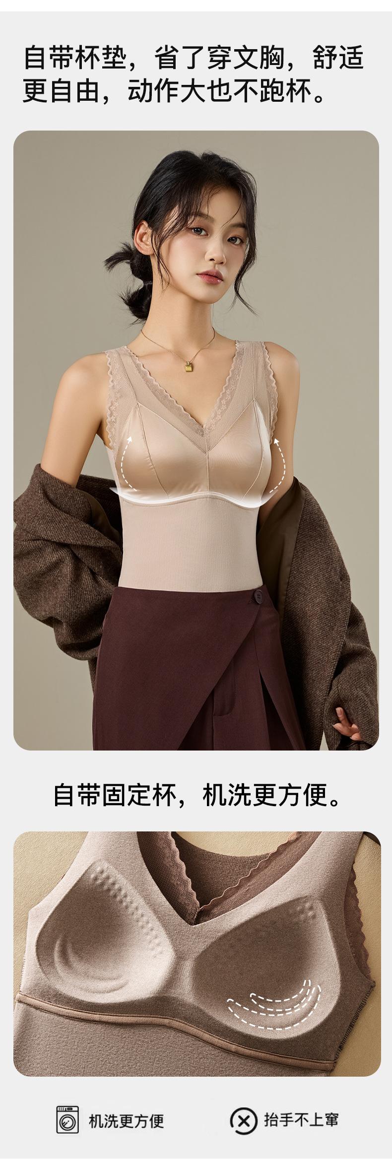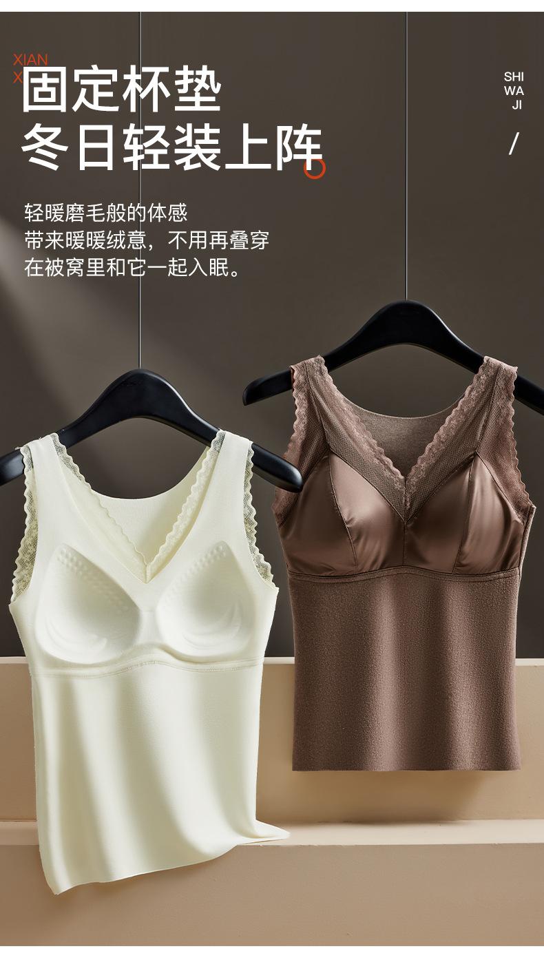 Chaleco térmico de terciopelo alemán para mujer otoño e invierno con almohadilla en el pecho de una pieza con forro polar grueso ropa interior base ajustada sin costuras top
