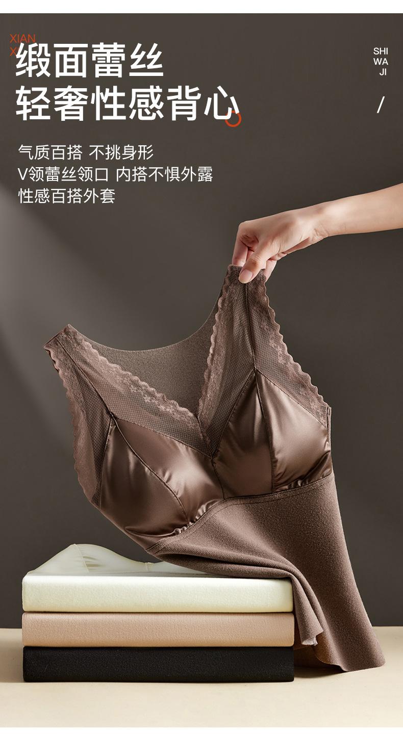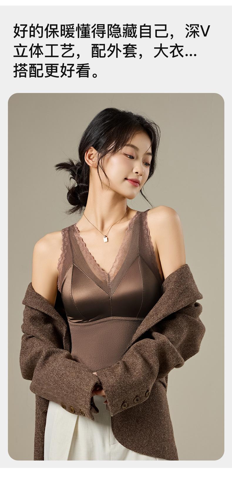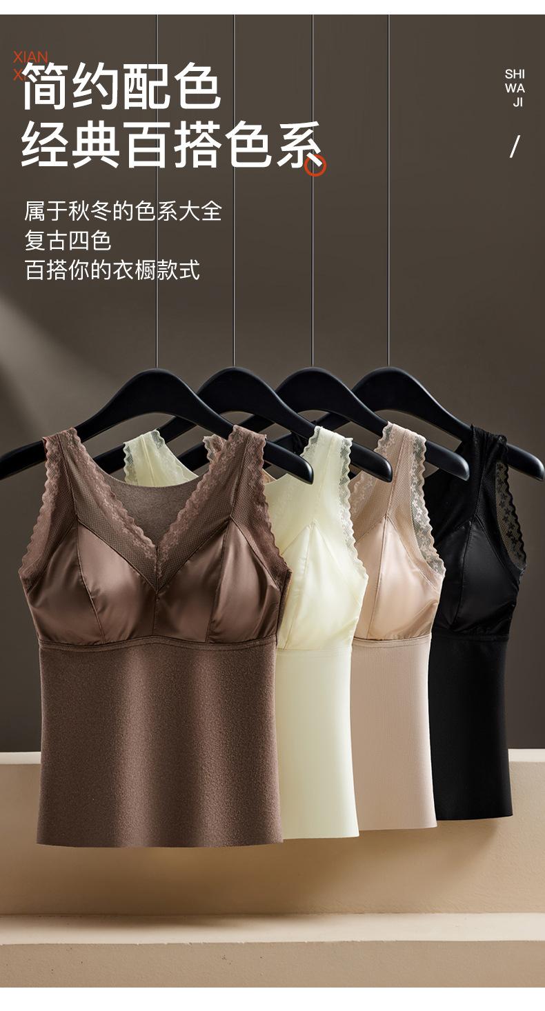 Chaleco térmico de terciopelo alemán para mujer otoño e invierno con almohadilla en el pecho de una pieza con forro polar grueso ropa interior base ajustada sin costuras top