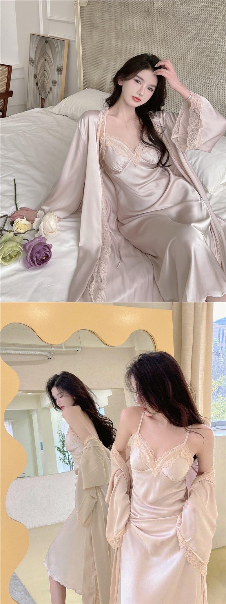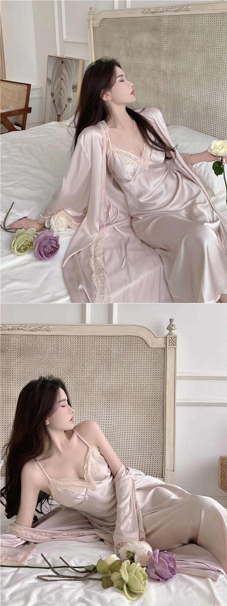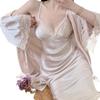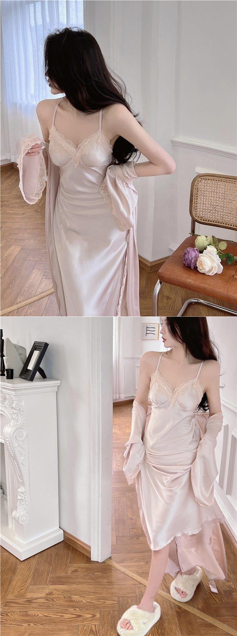 Pijama Sexy de Tirantes para Mujer Verano 2024 Nuevo Seda de Hielo de Alta Gama Estilo Puro Lujuria Camisón con Almohadillas para el Busto Conjunto de Dos Piezas