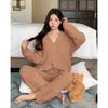 Pijama de terciopelo alemán para mujer, traje de manga larga de otoño e invierno, cárdigan coreano con solapa, ropa de casa casual cálida de alta gama que se puede usar en el exterior