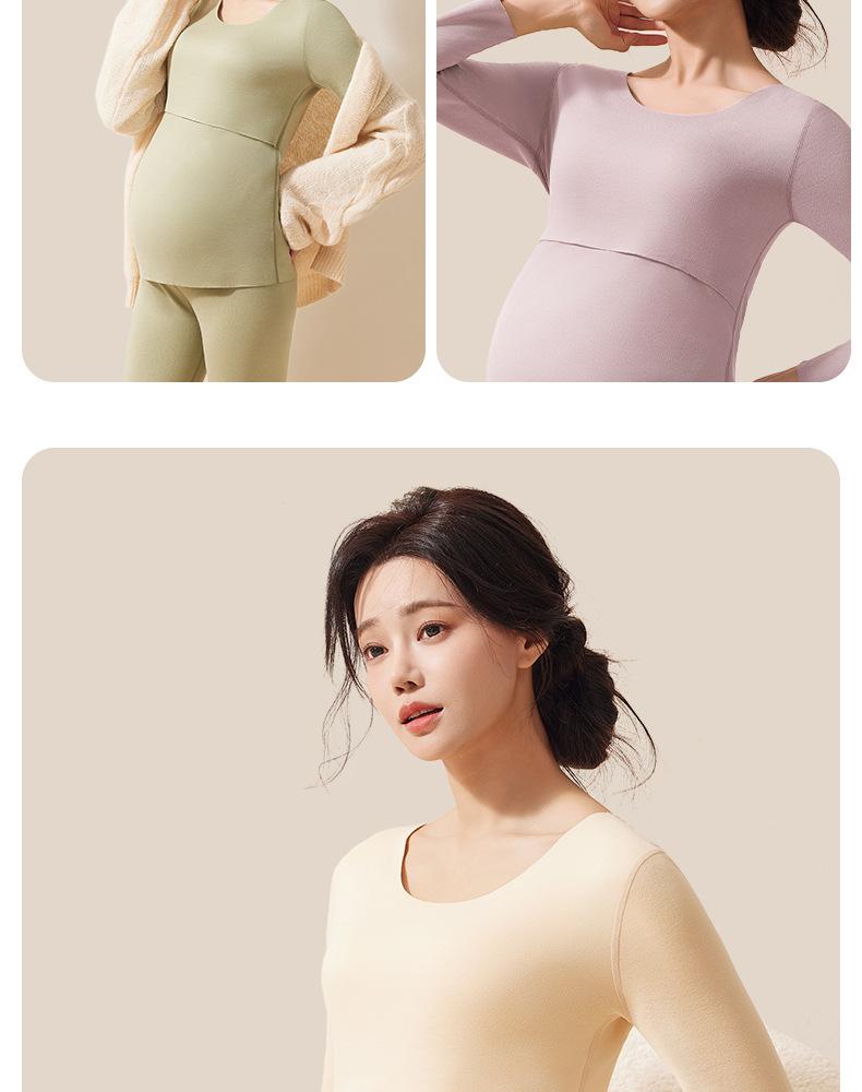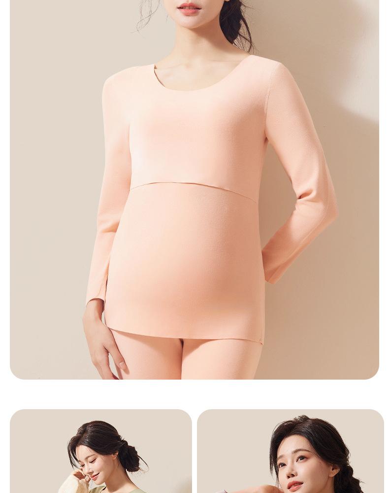 Ropa interior térmica de apertura horizontal para embarazadas, sin rastro, para el hogar, posparto, lactancia, color sólido, otoño