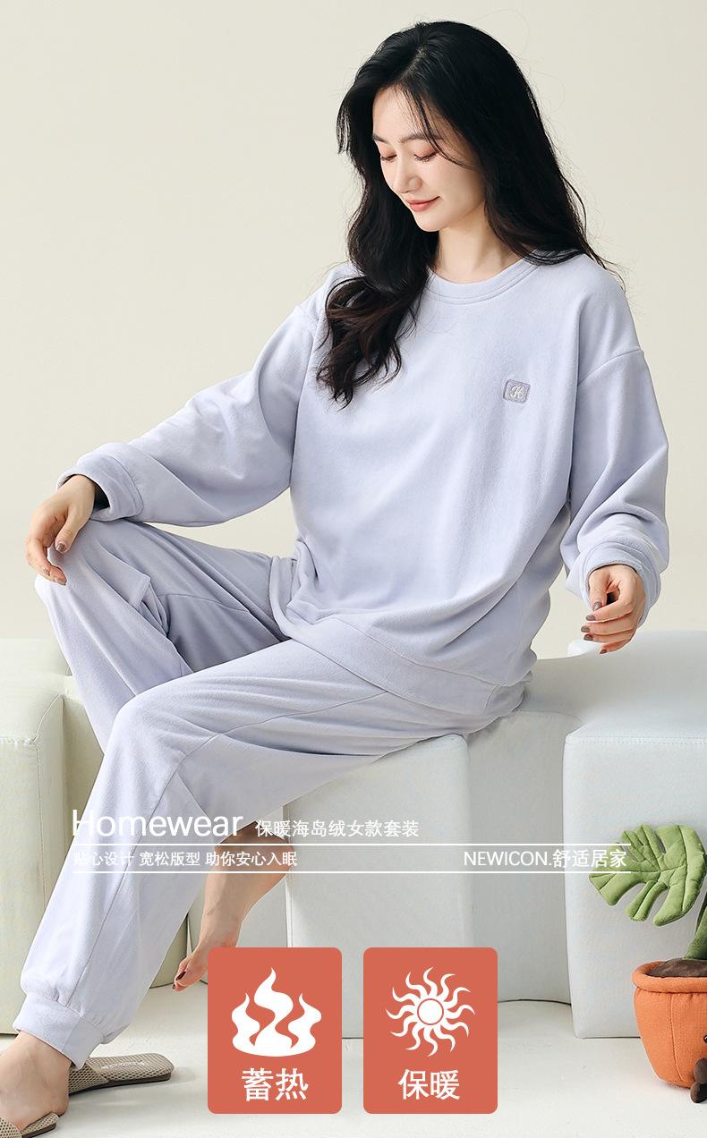 Pijama de terciopelo de isla para mujer, otoño e invierno, chaqueta cálida de manga larga con forro polar, ropa de hogar sencilla para mujer, traje informal