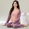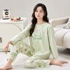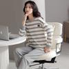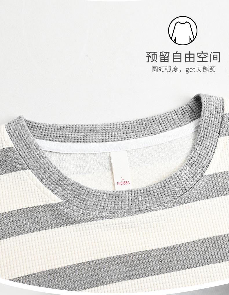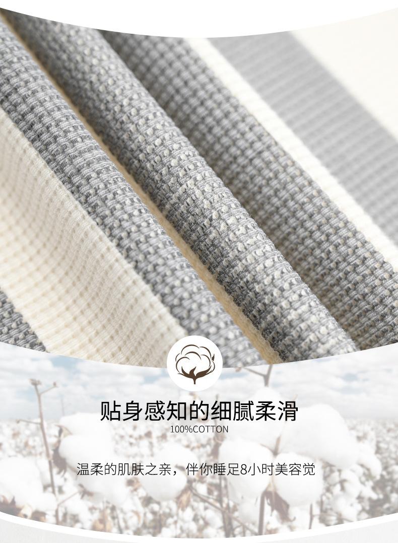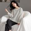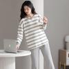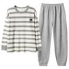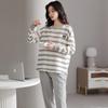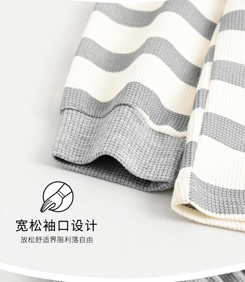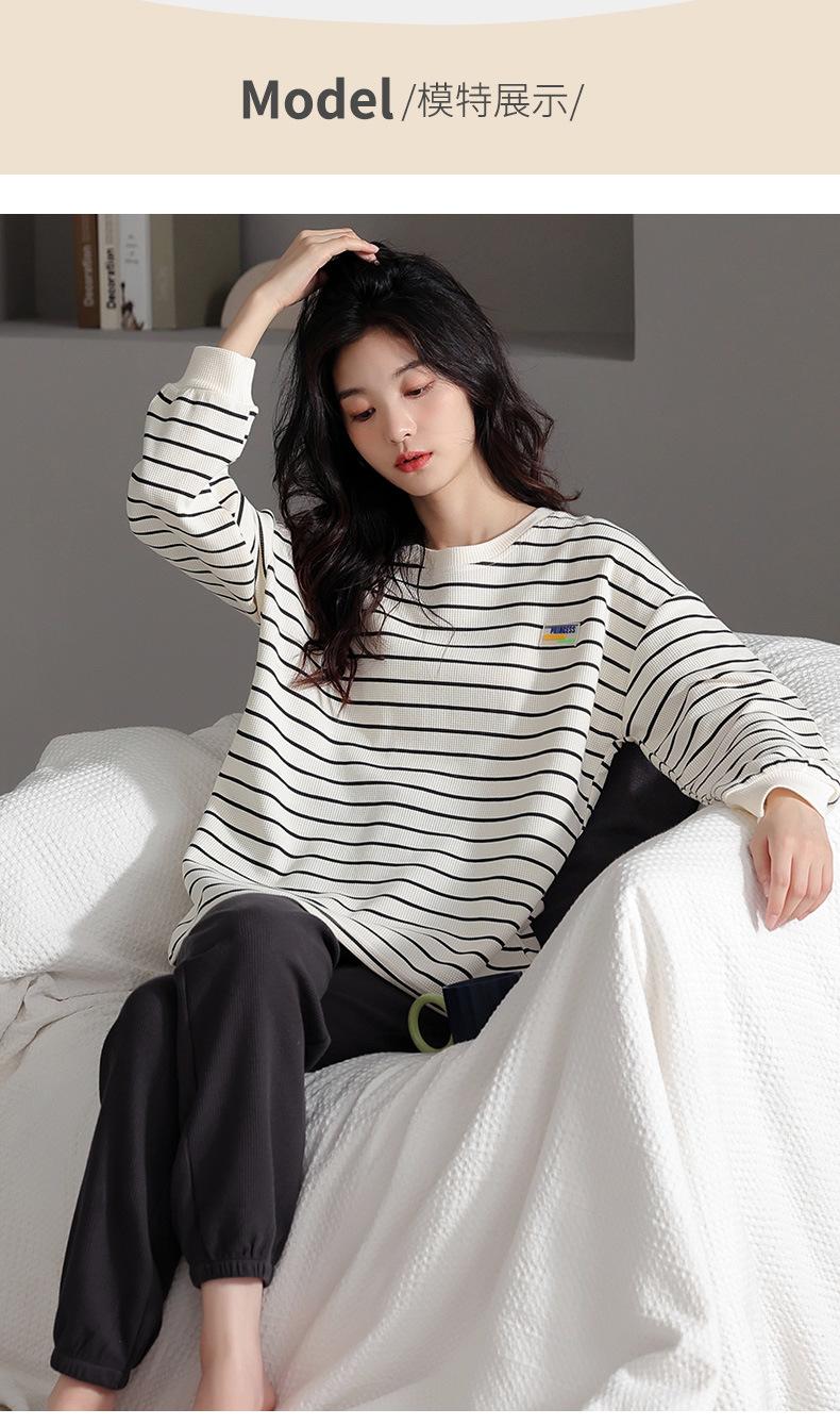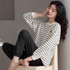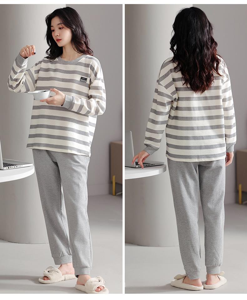 Pijamas de mujer de primavera y otoño de algodón puro de manga larga a rayas con cuello de gofre, ropa informal para el hogar, traje de primavera de talla grande