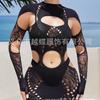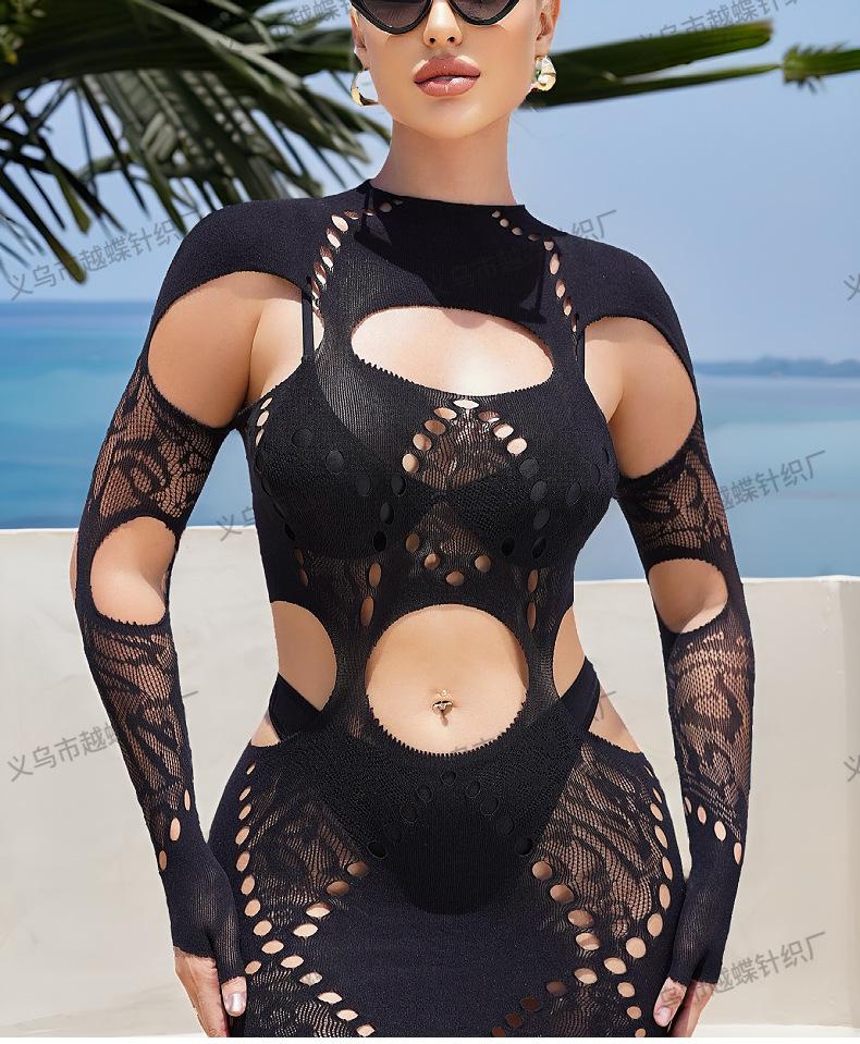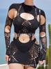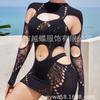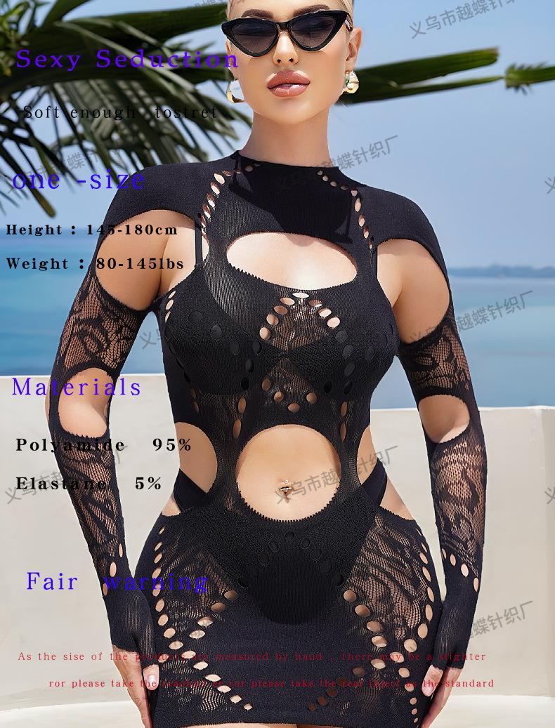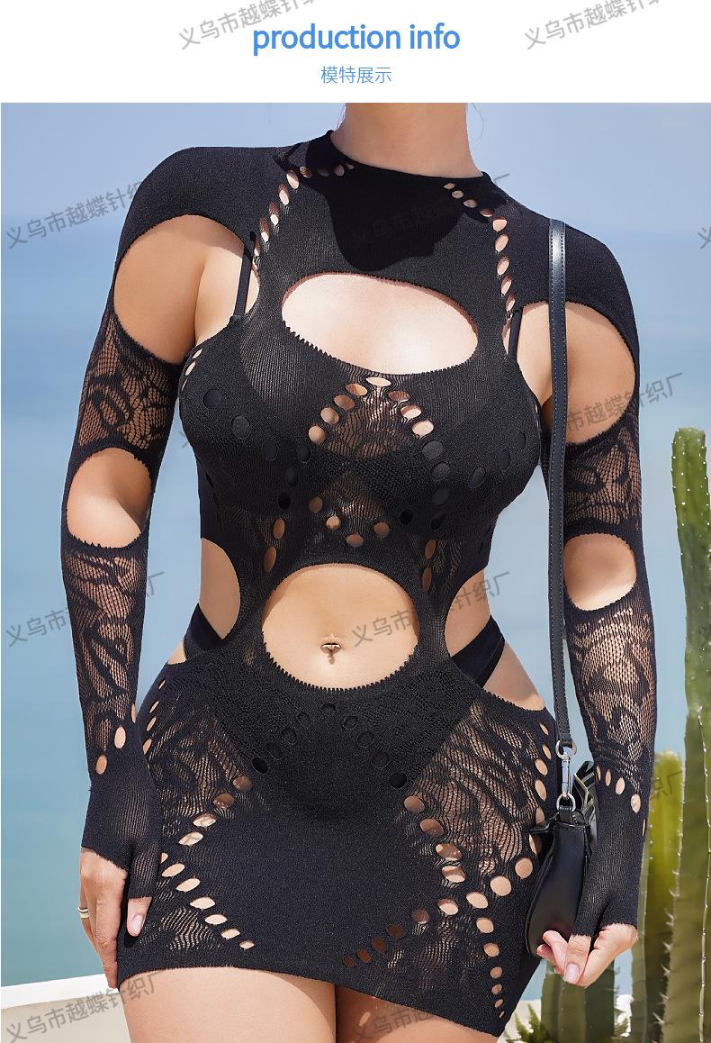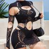 Europeo y Americano Nuevo Vestido de Mujer de Color Sólido Cuello Alto Agujero de Costura Manga Larga Sexy Ajustado Cintura Baja Ultra Corto YD8182