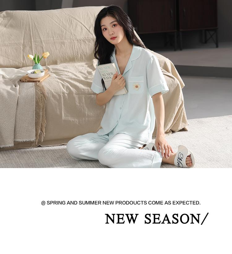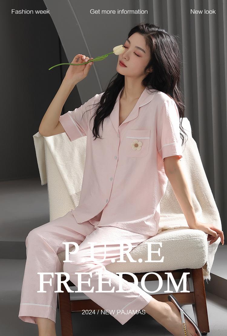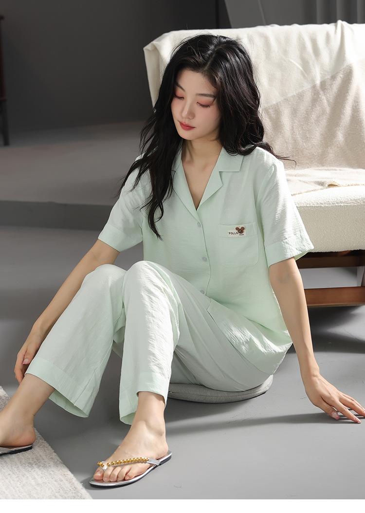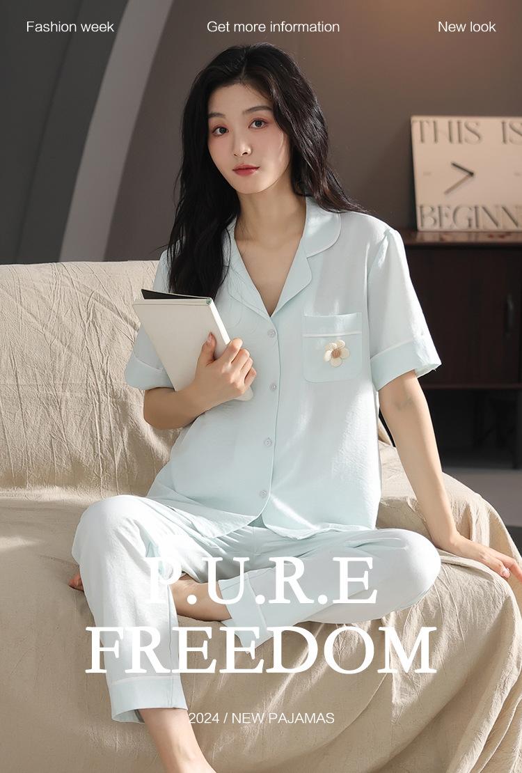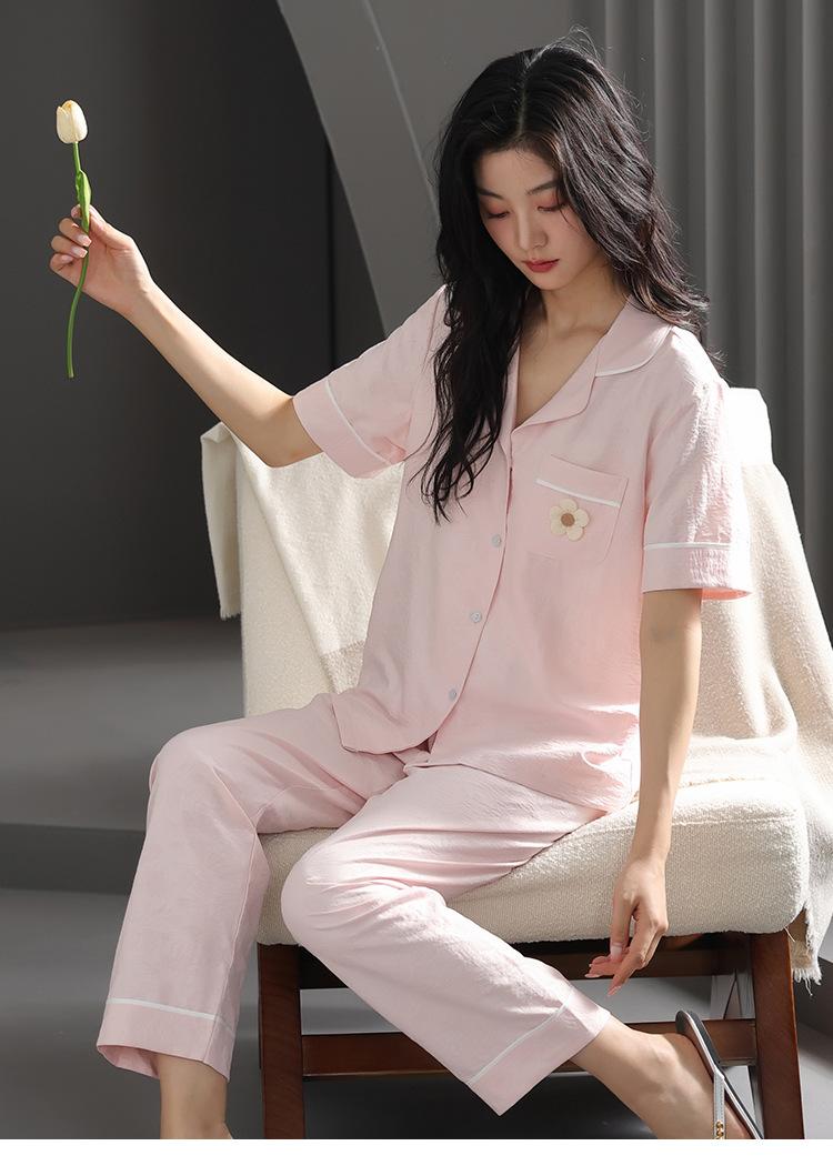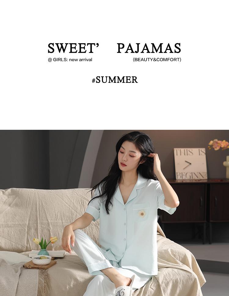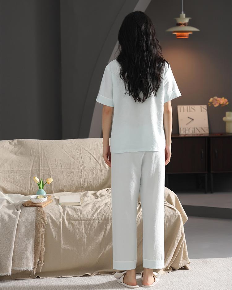 Pijamas de verano para mujer, moda de manga corta, pantalones, novedad de 2024, ropa de algodón con nubes, ropa informal para el hogar, traje