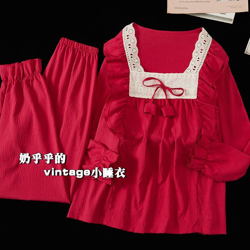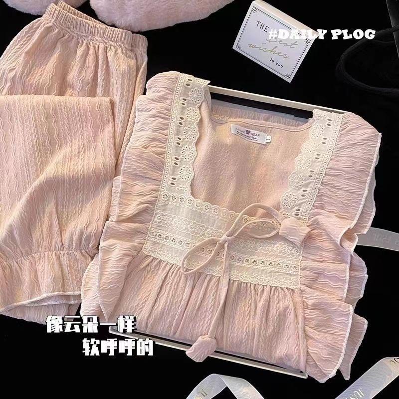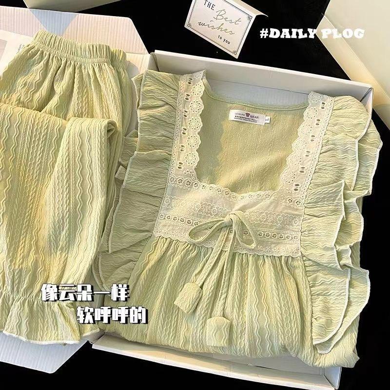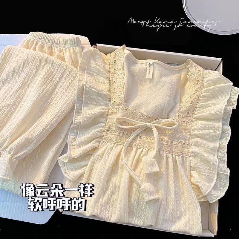 Pijama de dos piezas de algodón fino de alta calidad para primavera y verano, de manga larga, estilo coreano, nuevo y dulce, para niña.