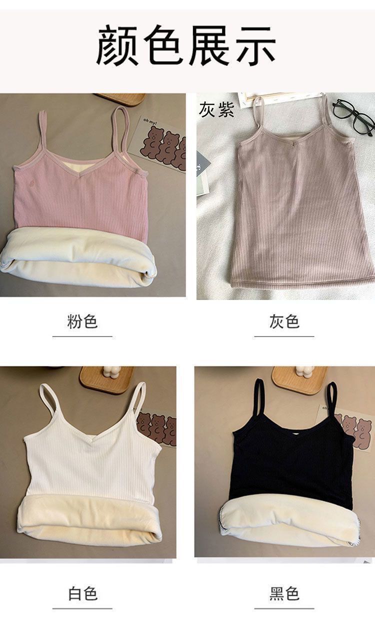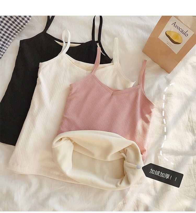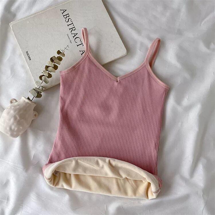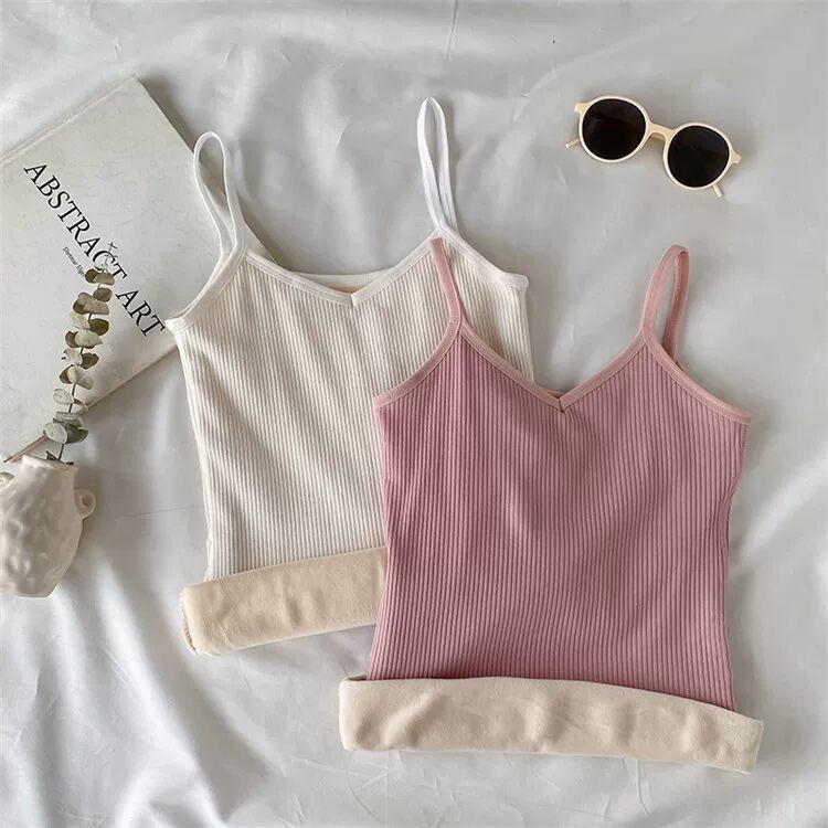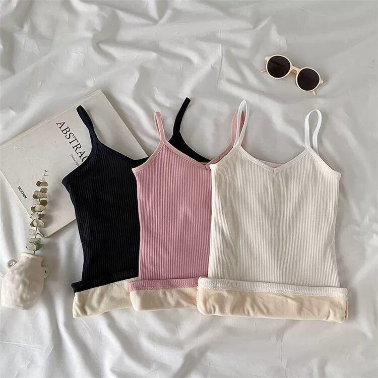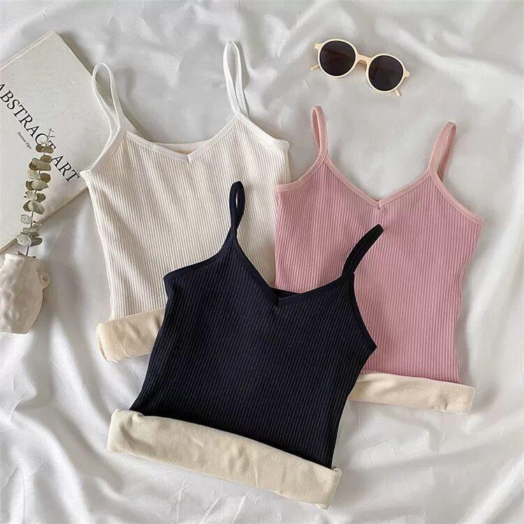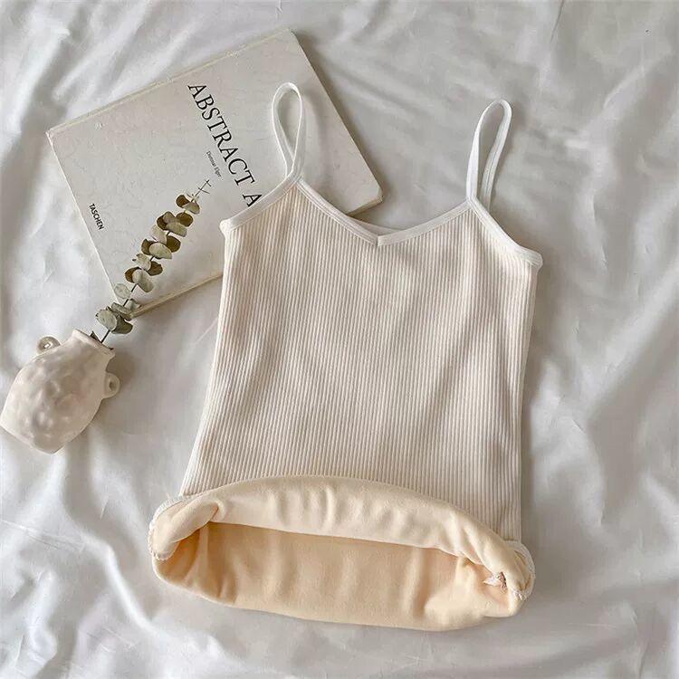 Chaleco Cálido Sling Ropa Interior para Mujer con Forro Polar Engrosado a Prueba de Frío Estudiantes Estilo Coreano Camiseta Base Ropa Interior Otoño e Invierno Ropa Exterior Top