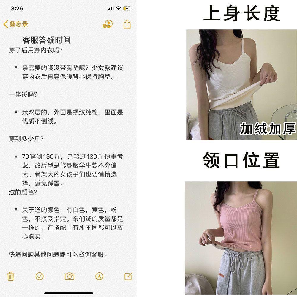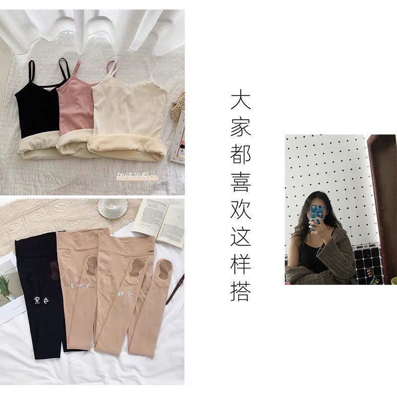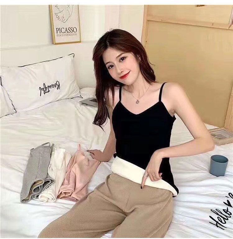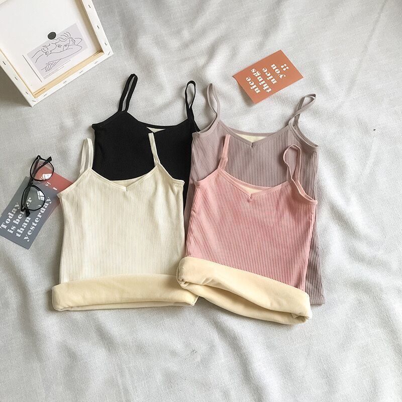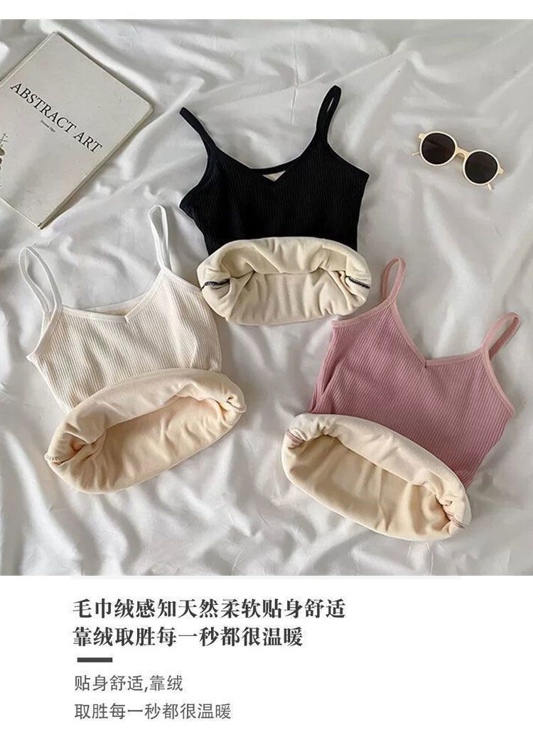 Chaleco Cálido Sling Ropa Interior para Mujer con Forro Polar Engrosado a Prueba de Frío Estudiantes Estilo Coreano Camiseta Base Ropa Interior Otoño e Invierno Ropa Exterior Top
