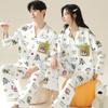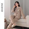 Pijamas de otoño nuevos en stock directos para mujer, cárdigan con estampado de color sólido simple, ropa para el hogar con solapa, se pueden usar al aire libre