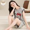 Pijama de Comercio Exterior Casual de Manga Corta con Pantalones Cortos Cuello Redondo Pulóver para Mujer Lindo Algodón Puro Traje de Primavera y Verano para Niñas