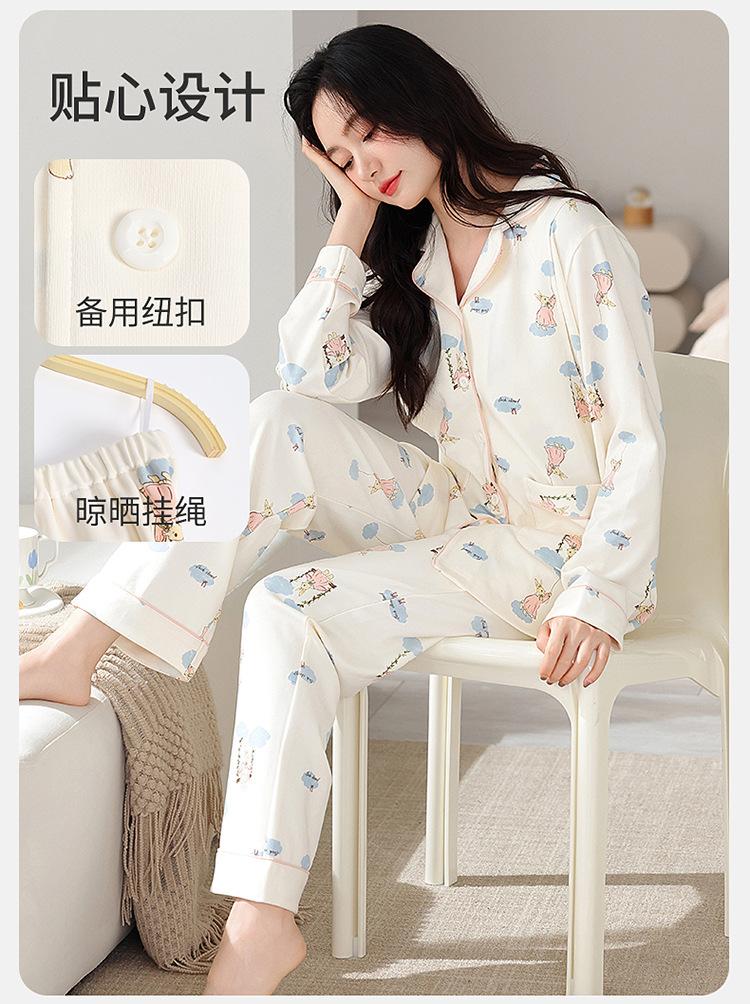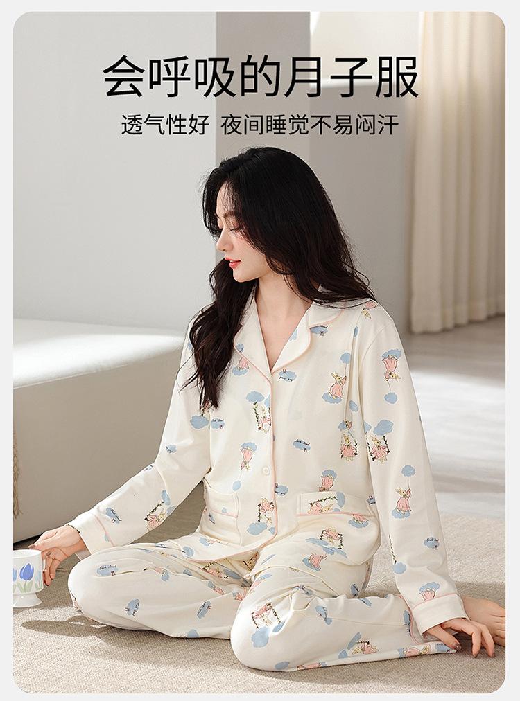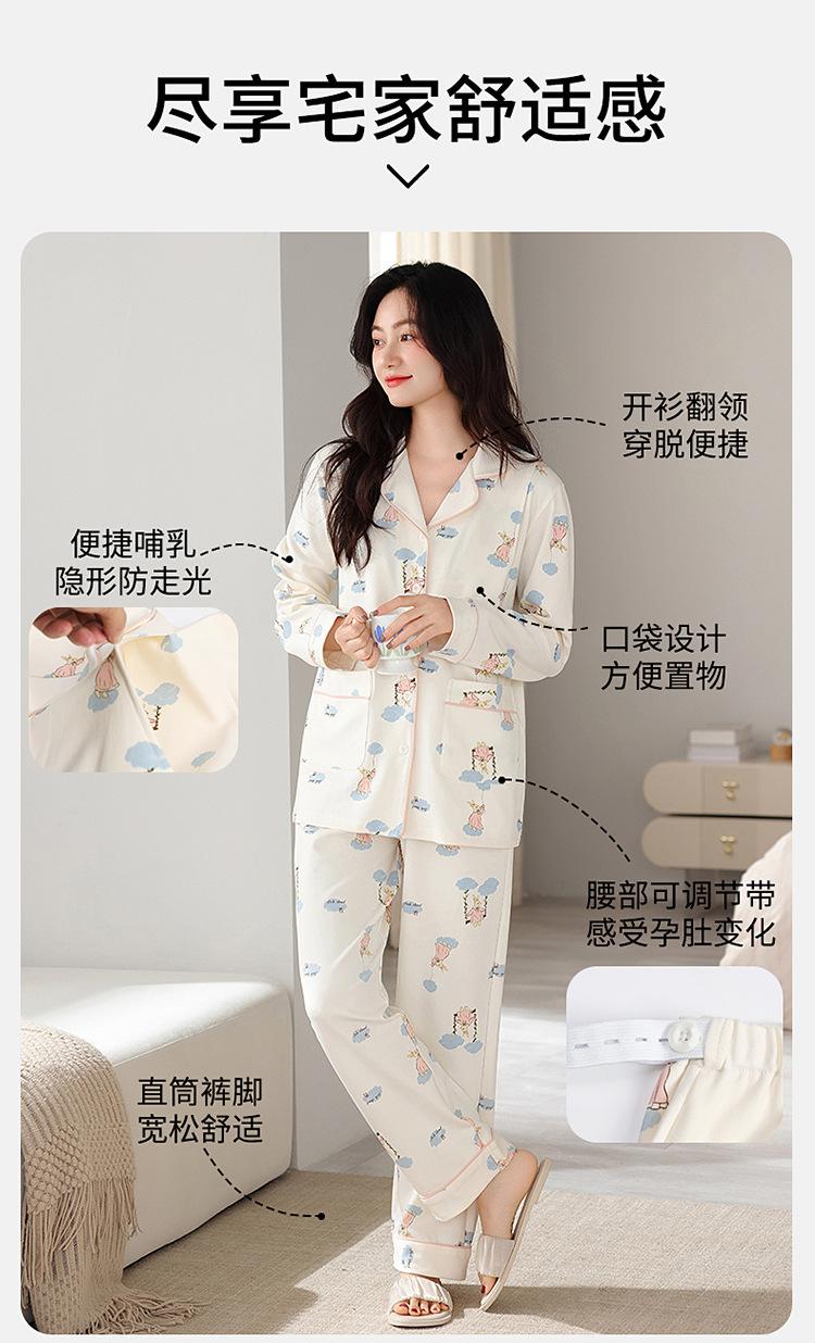 Pijama de algodón puro para mujer, ropa de lactancia posparto, de otoño e invierno, para embarazadas.
