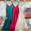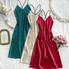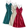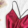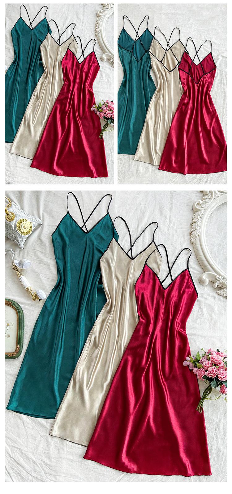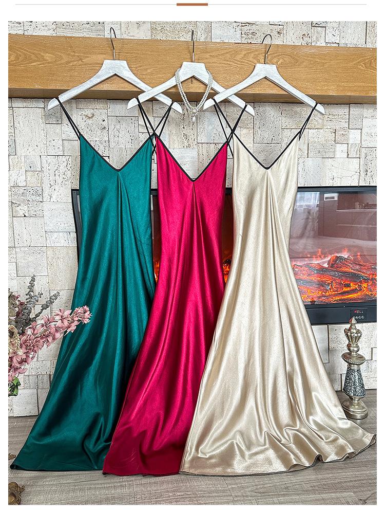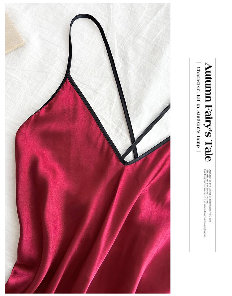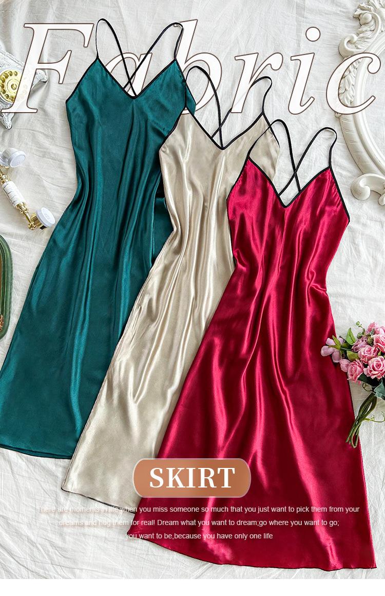 Pijama de baño largo informal de seda con cordones y tirantes cruzados para mujer, camisón de verano sencillo y sexy de seda helada a la moda.