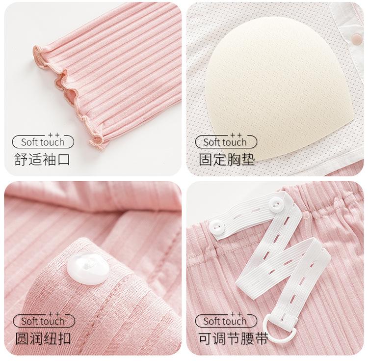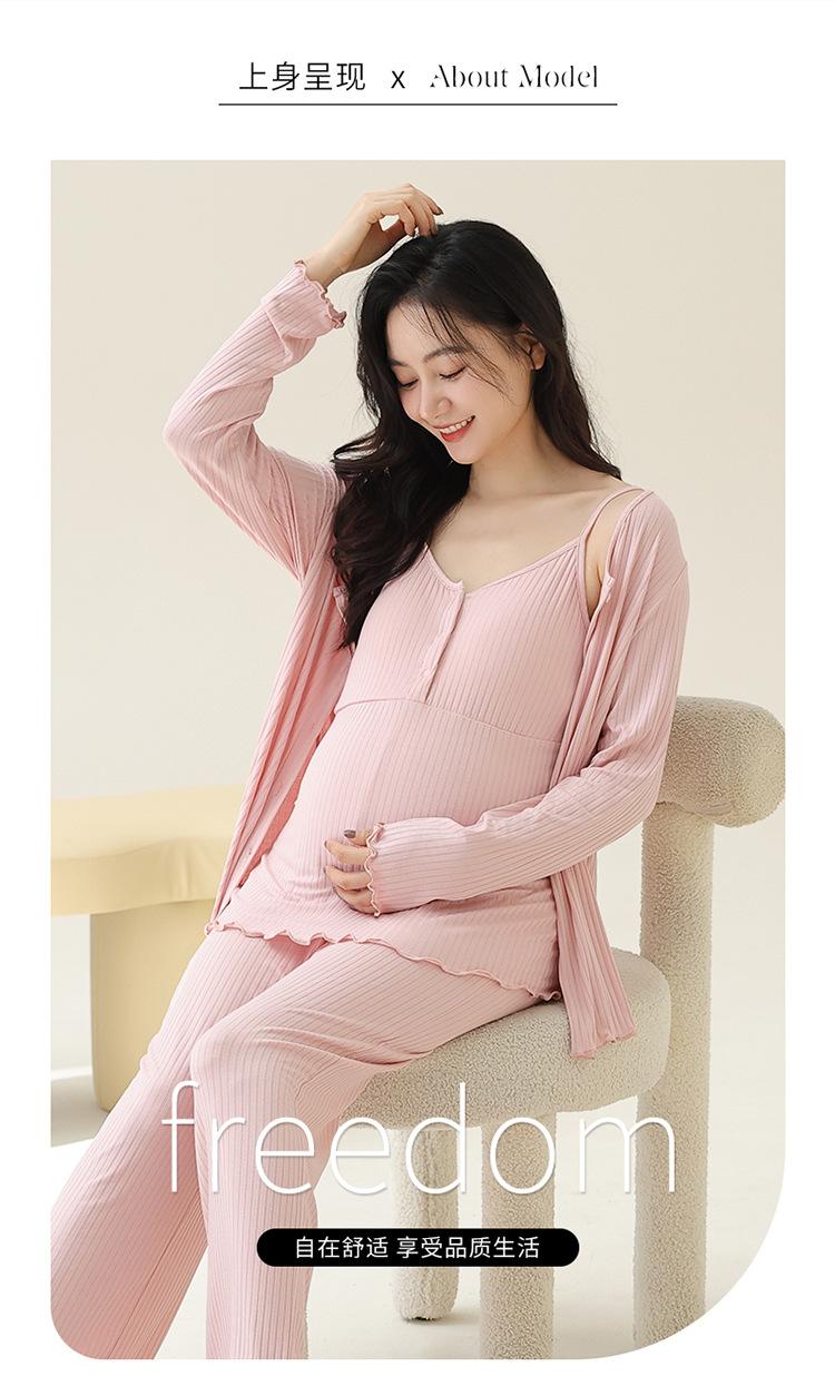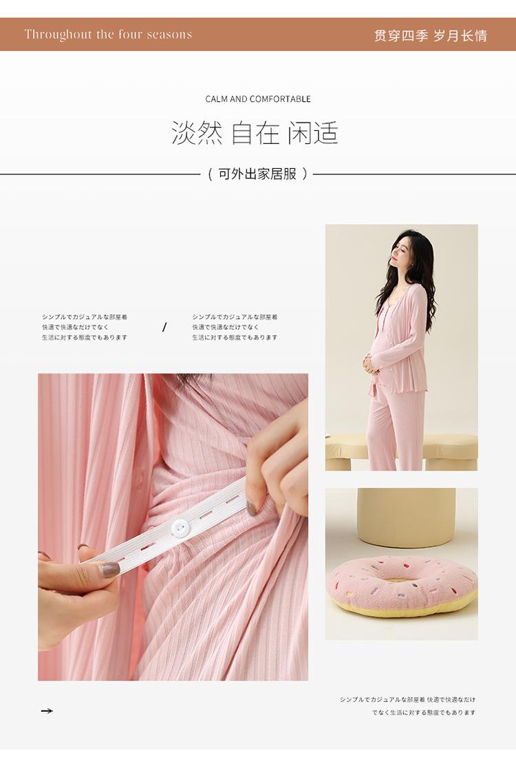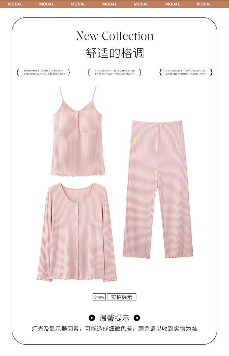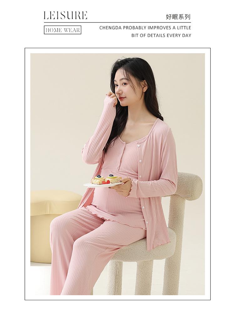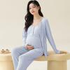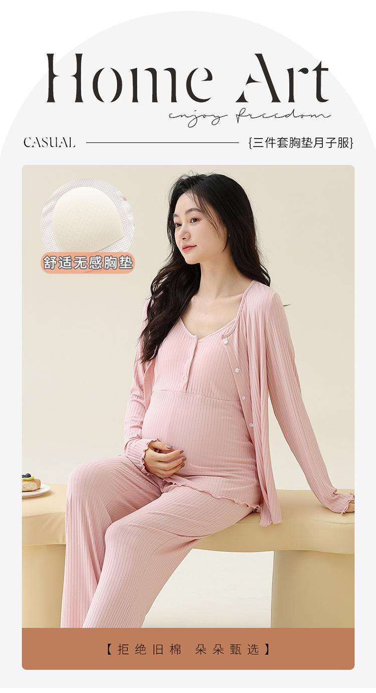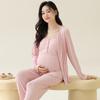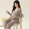 Conjunto de tres piezas de manga larga Luna Modal de primavera y otoño para embarazadas, pijamas para mujeres, ropa para el hogar con almohadilla para el pecho para lactancia posparto.