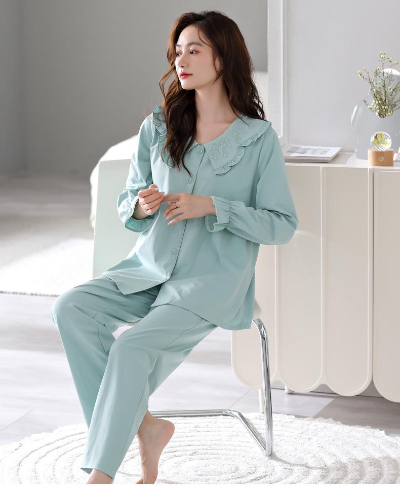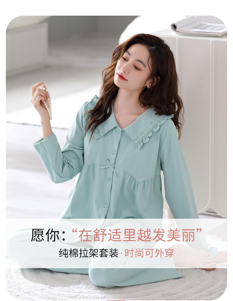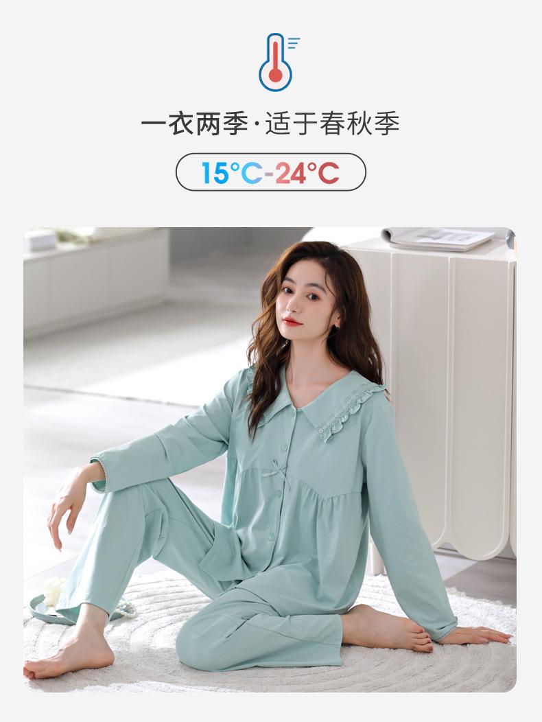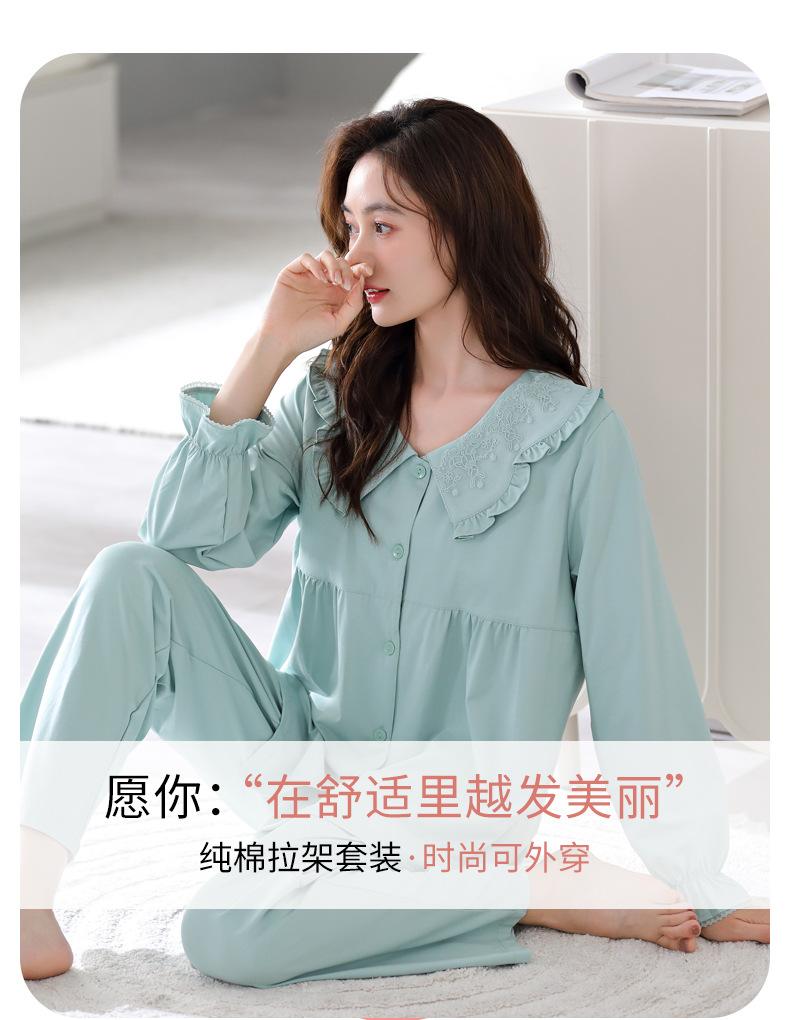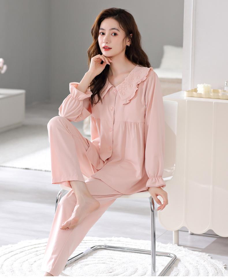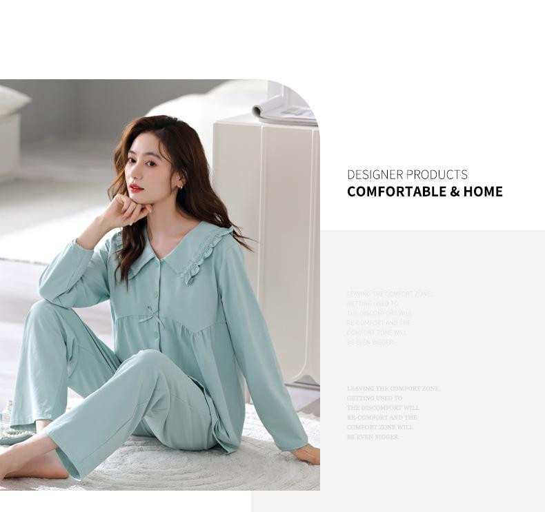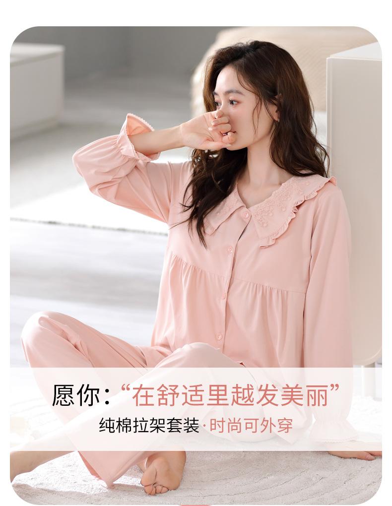 [Con almohadilla para el pecho] Pijama de mujer de primavera y otoño nuevo traje de manga larga de algodón puro de talla grande ropa exterior de otoño ropa de casa de mujer