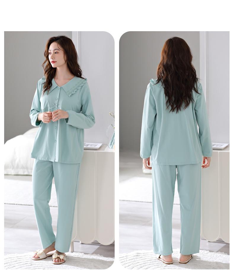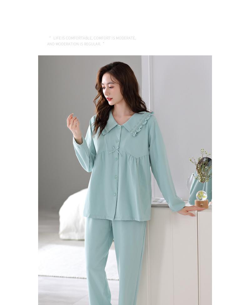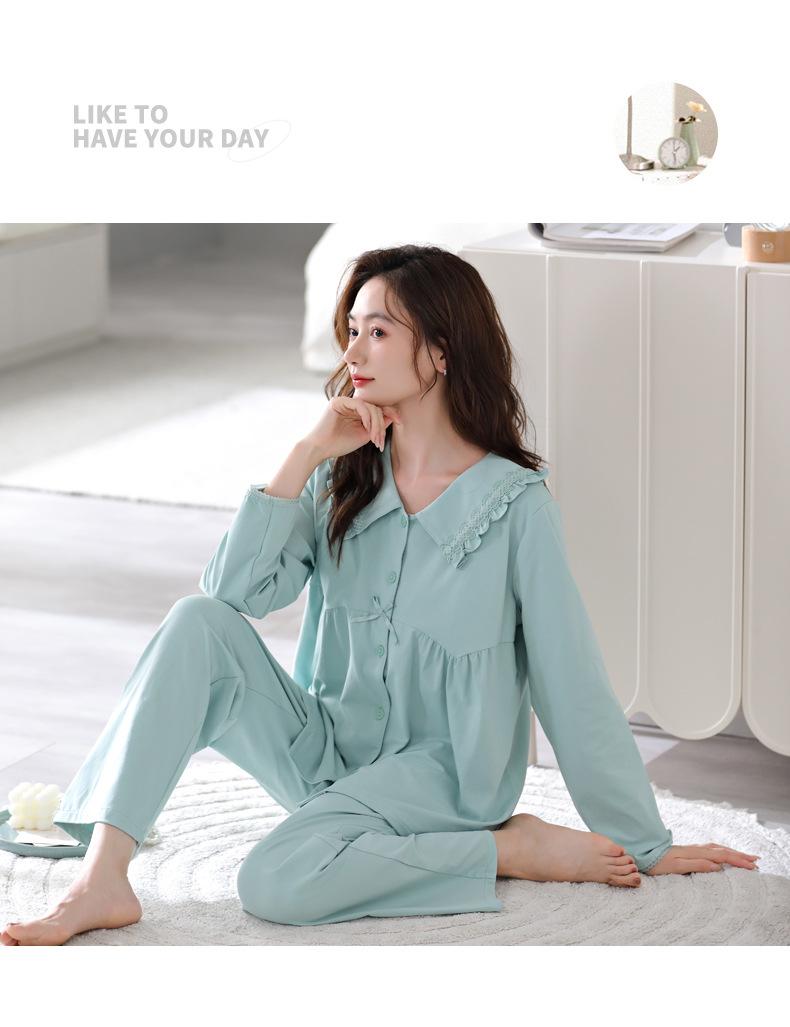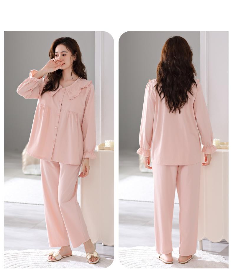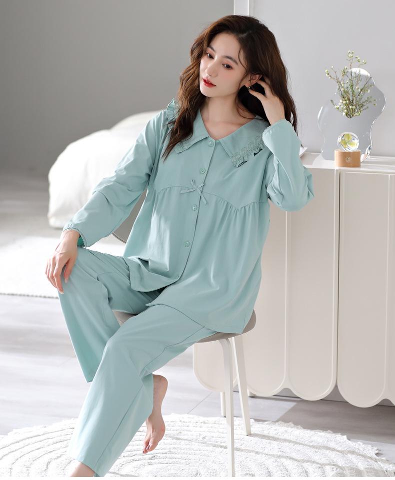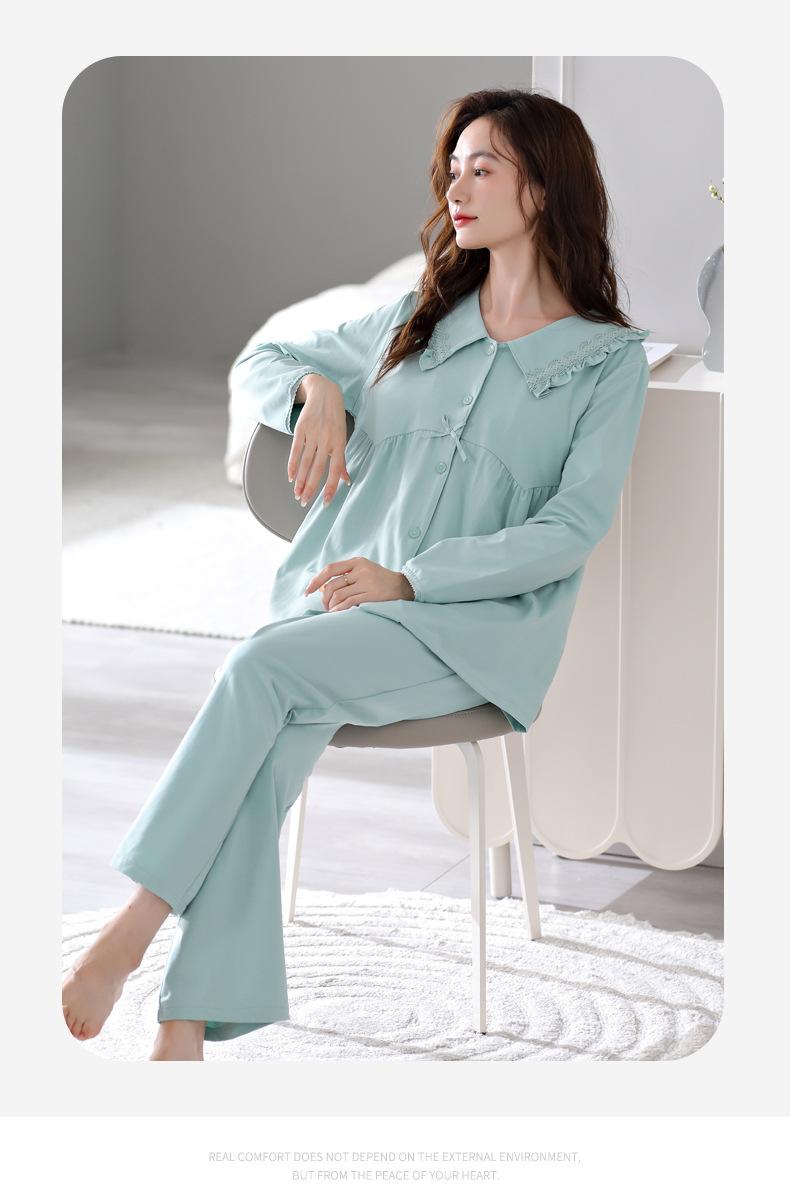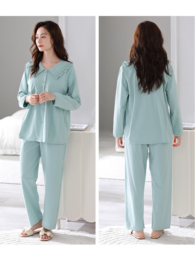 [Con almohadilla para el pecho] Pijama de mujer de primavera y otoño nuevo traje de manga larga de algodón puro de talla grande ropa exterior de otoño ropa de casa de mujer