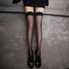 Seda Negra sexy para mujer tirantes de una pieza encaje calcetines hasta la rodilla calcetines largos emocionales belleza de pierna medias largas negras de red