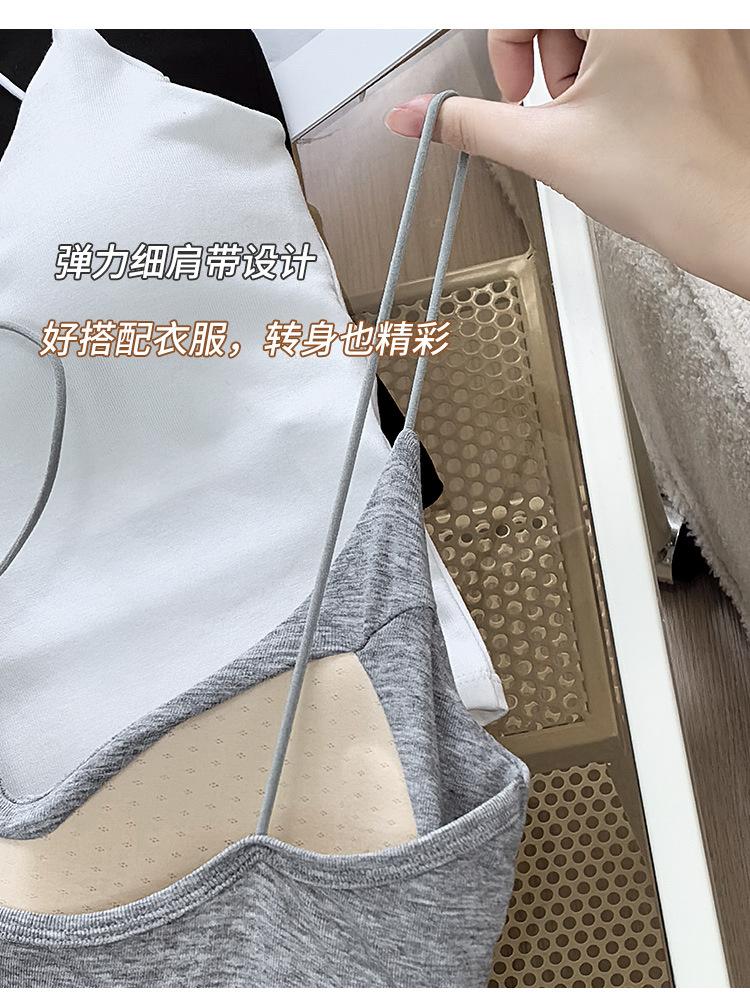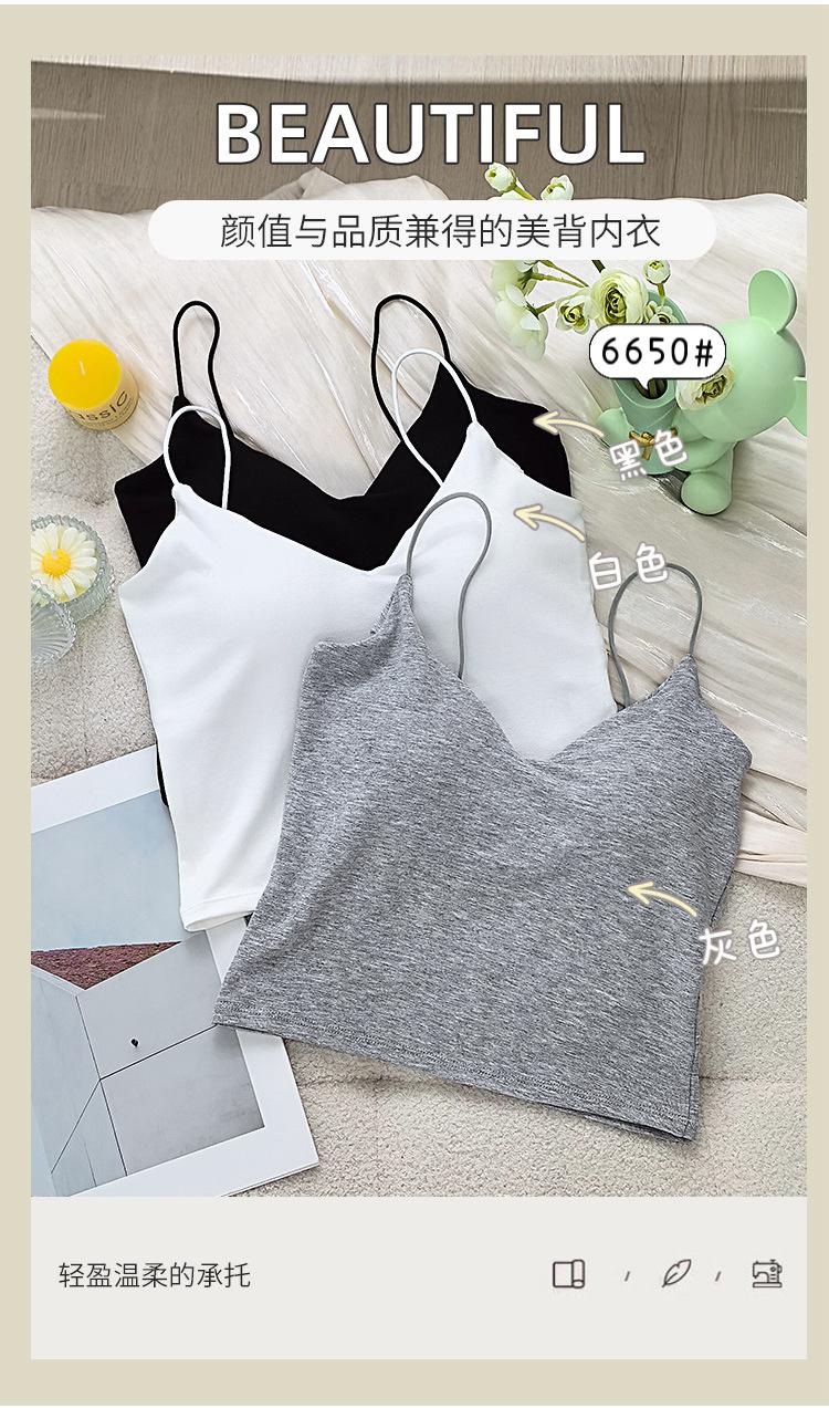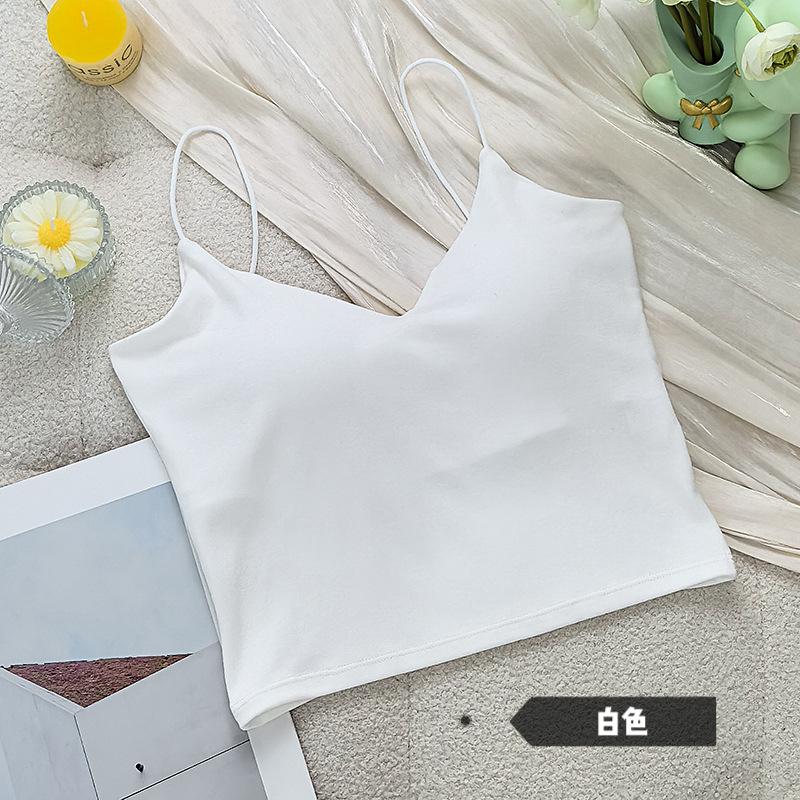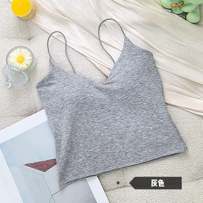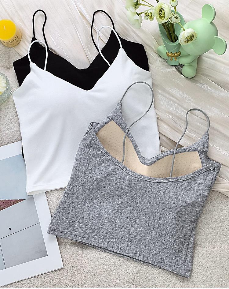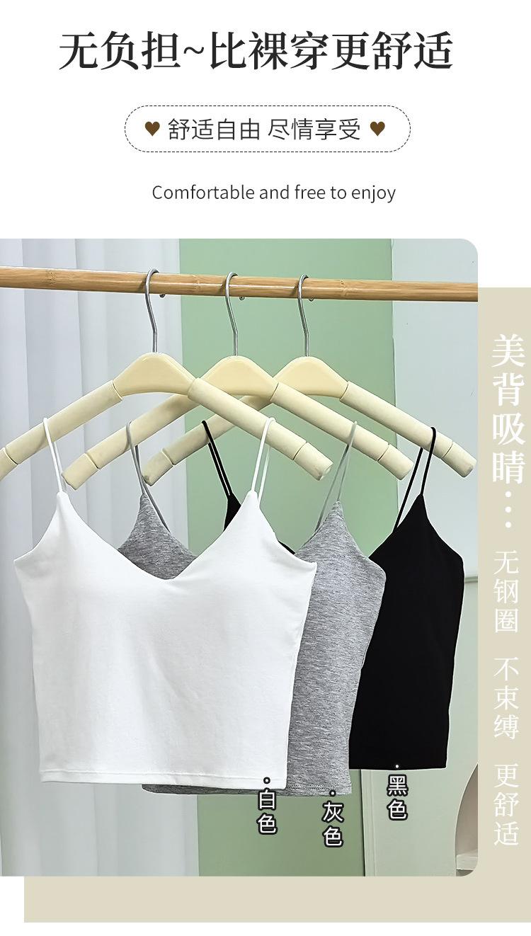 Camisola de algodón puro con escote en V y espalda hermosa, copa fija integrada, tirantes finos, sujetador sin costuras, ropa interior deportiva exterior para mujer
