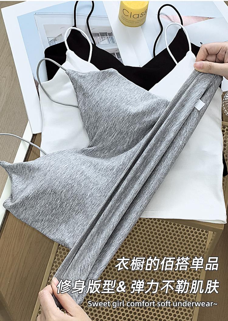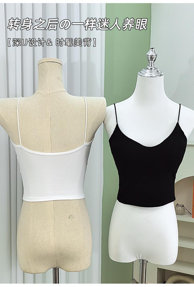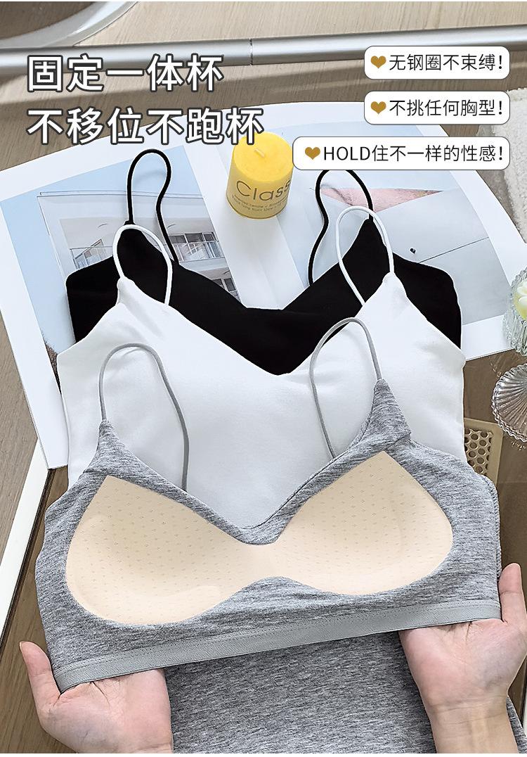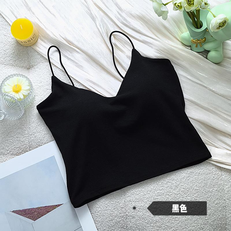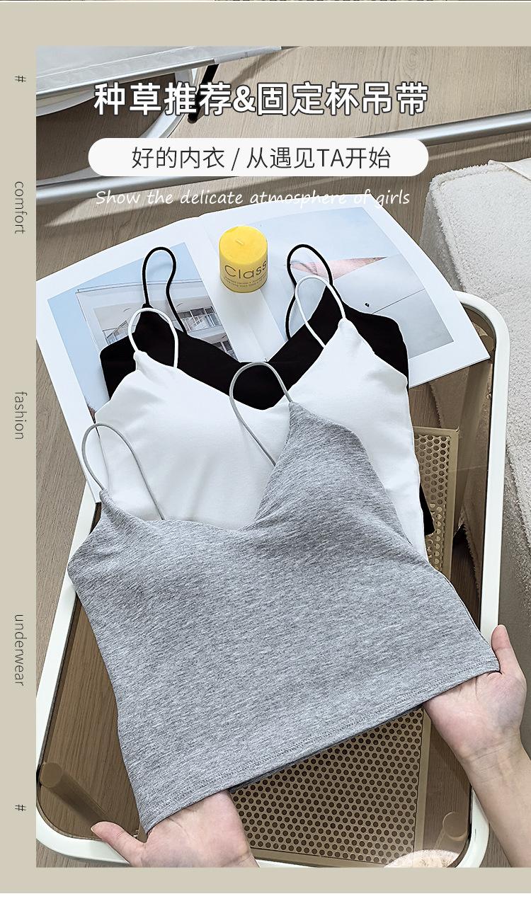 Camisola de algodón puro con escote en V y espalda hermosa, copa fija integrada, tirantes finos, sujetador sin costuras, ropa interior deportiva exterior para mujer