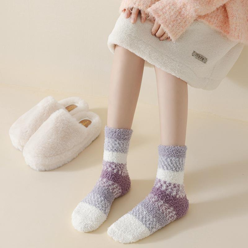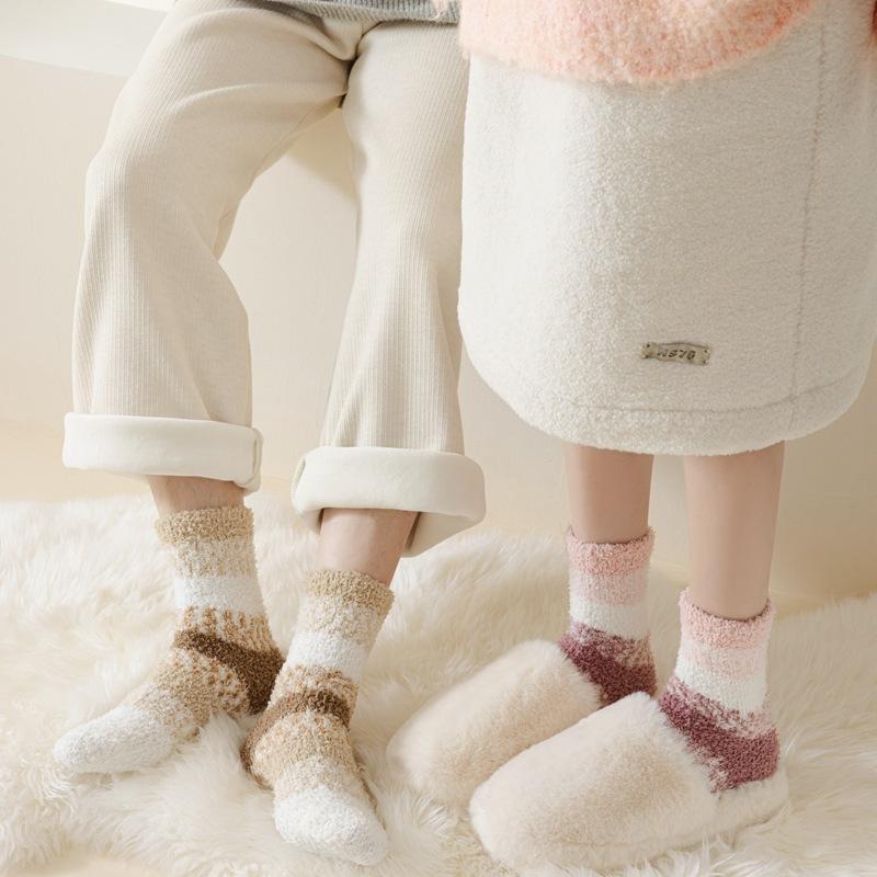 Calcetines de Terciopelo Coral, Calcetines de Pareja para Mujer, Desodorantes Otoño e Invierno Engrosados Cálidos para Piso, Calcetines para Dormir de Medio Terciopelo
