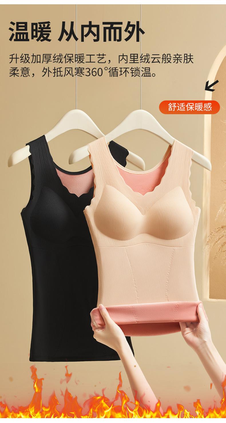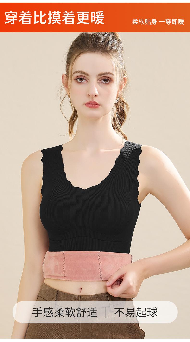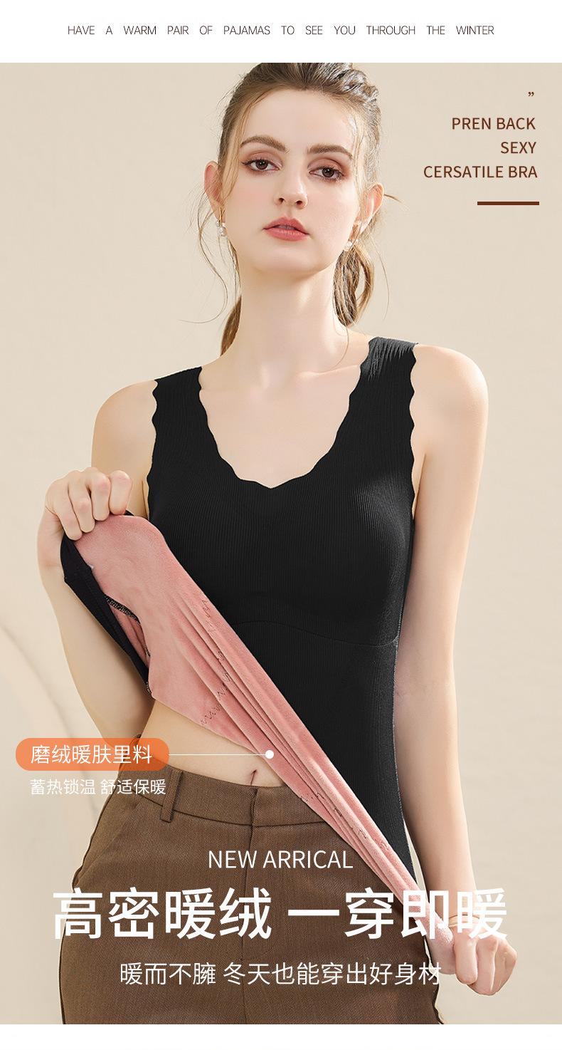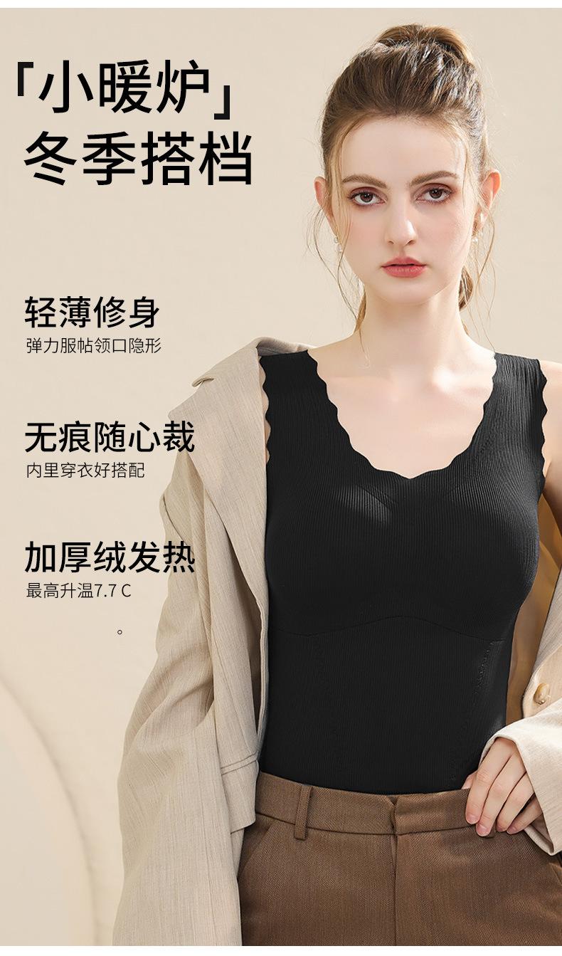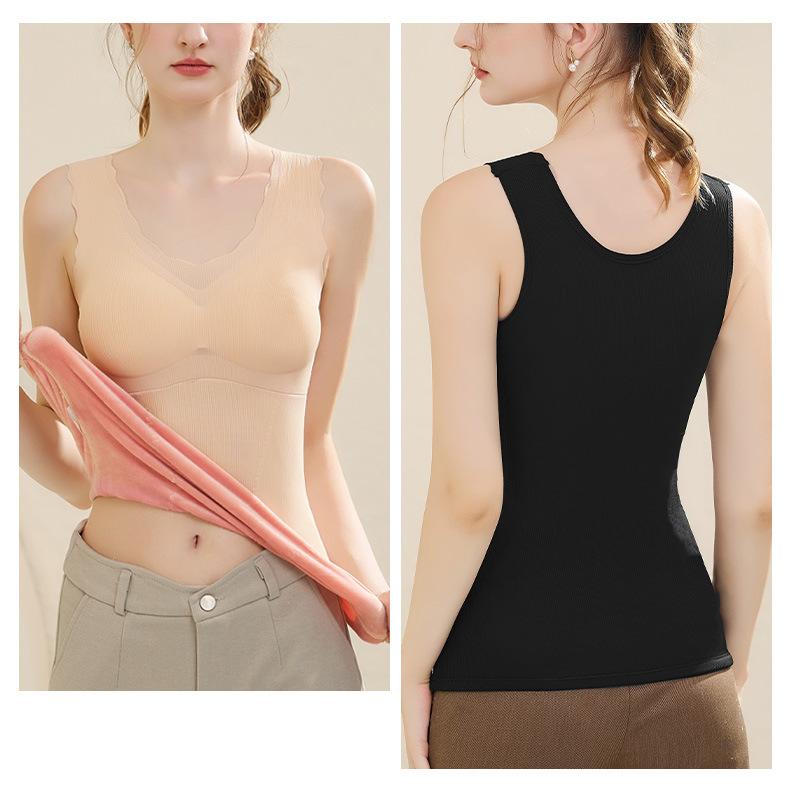 Chaleco Cálido Grueso con Forro Polar de Otoño e Invierno para Mujer con Cuello en V Ondulado, Almohadilla en el Pecho, Ajuste Delgado sin Marcas, Top Básico Adelgazante sin Mangas