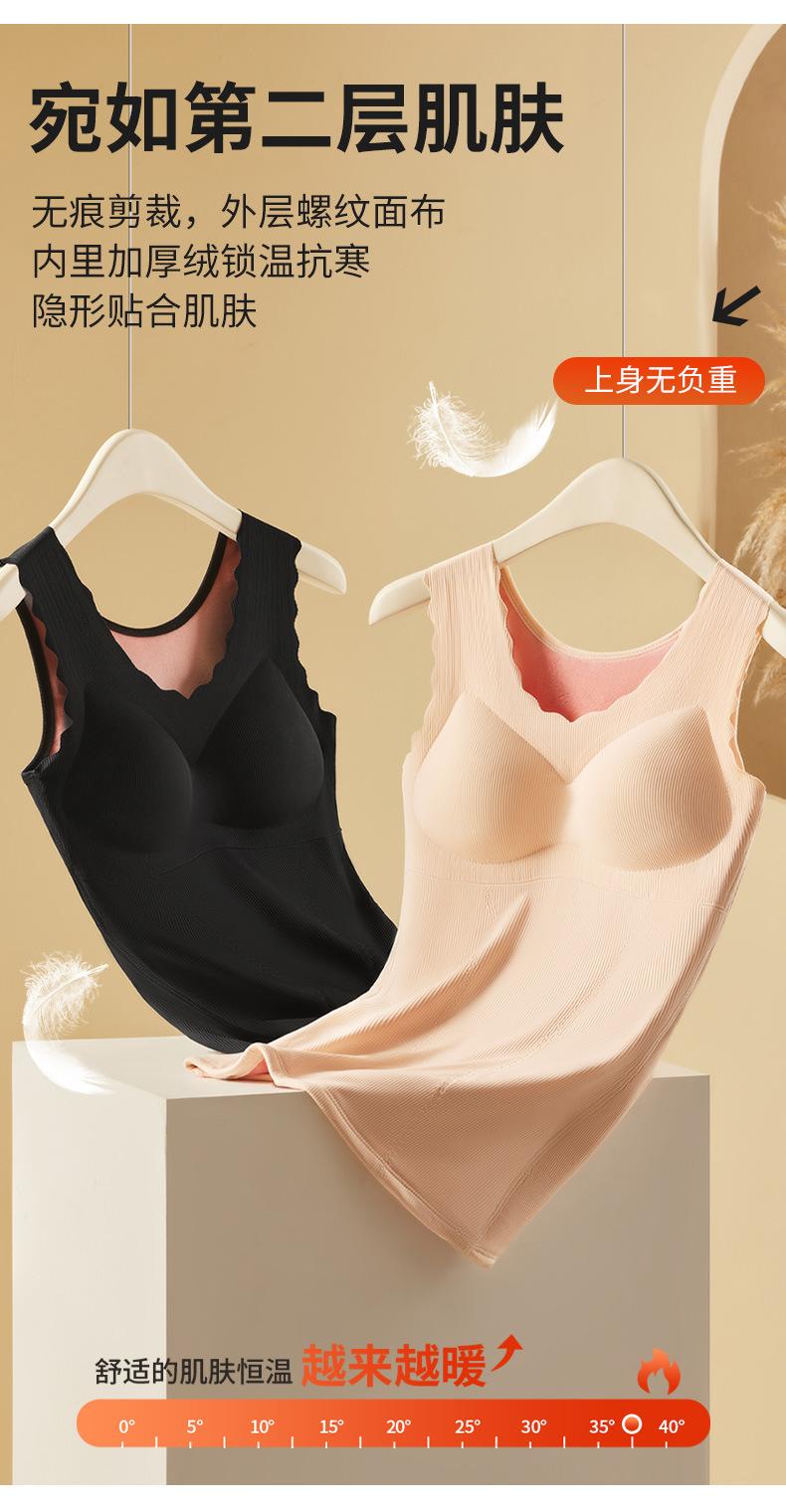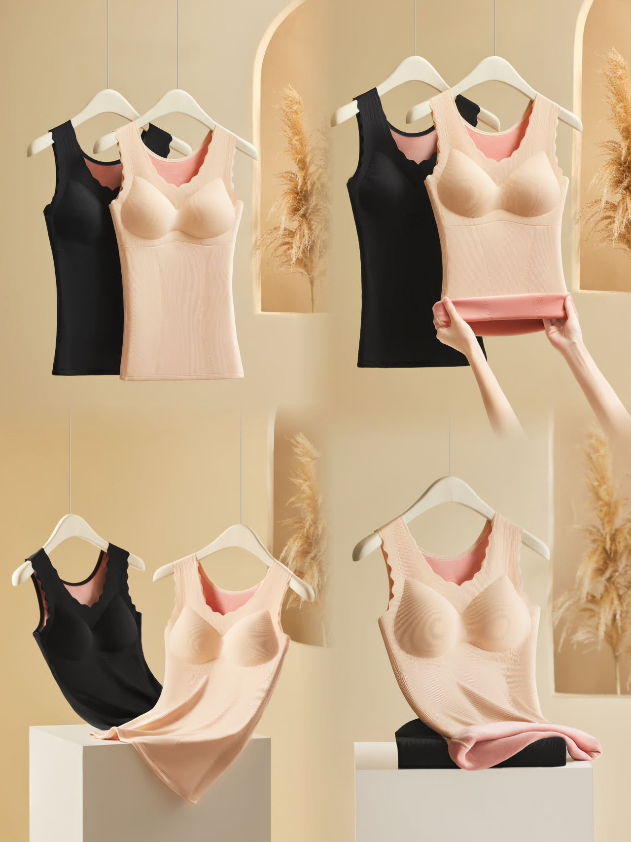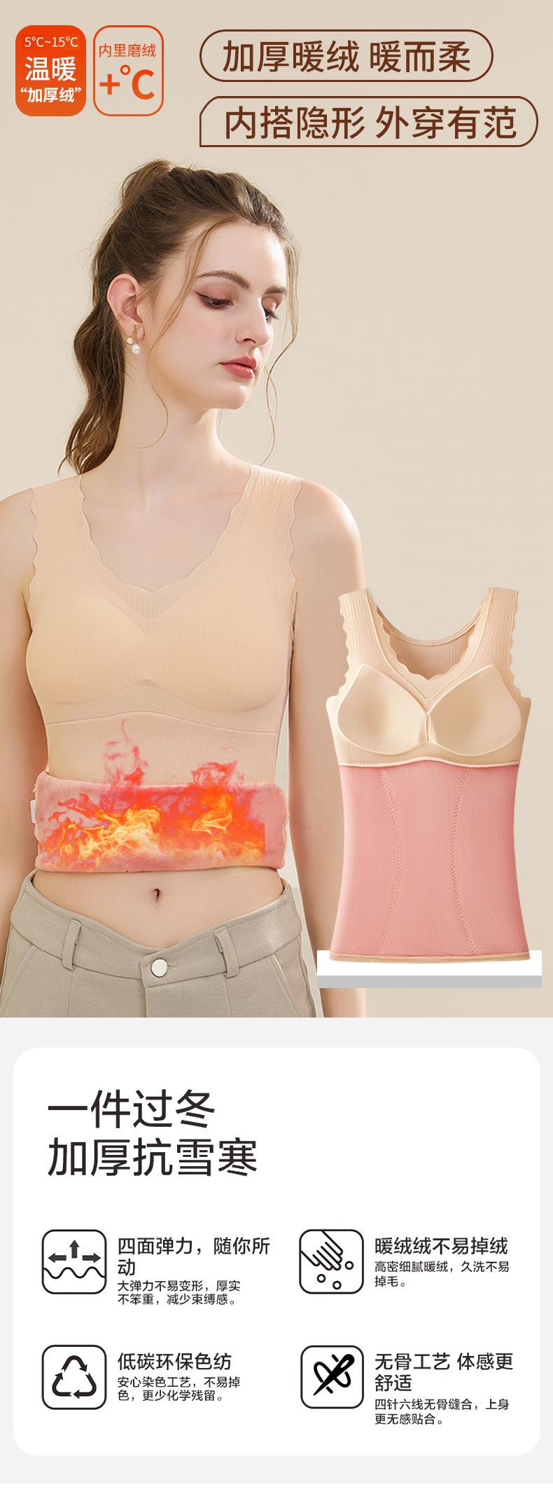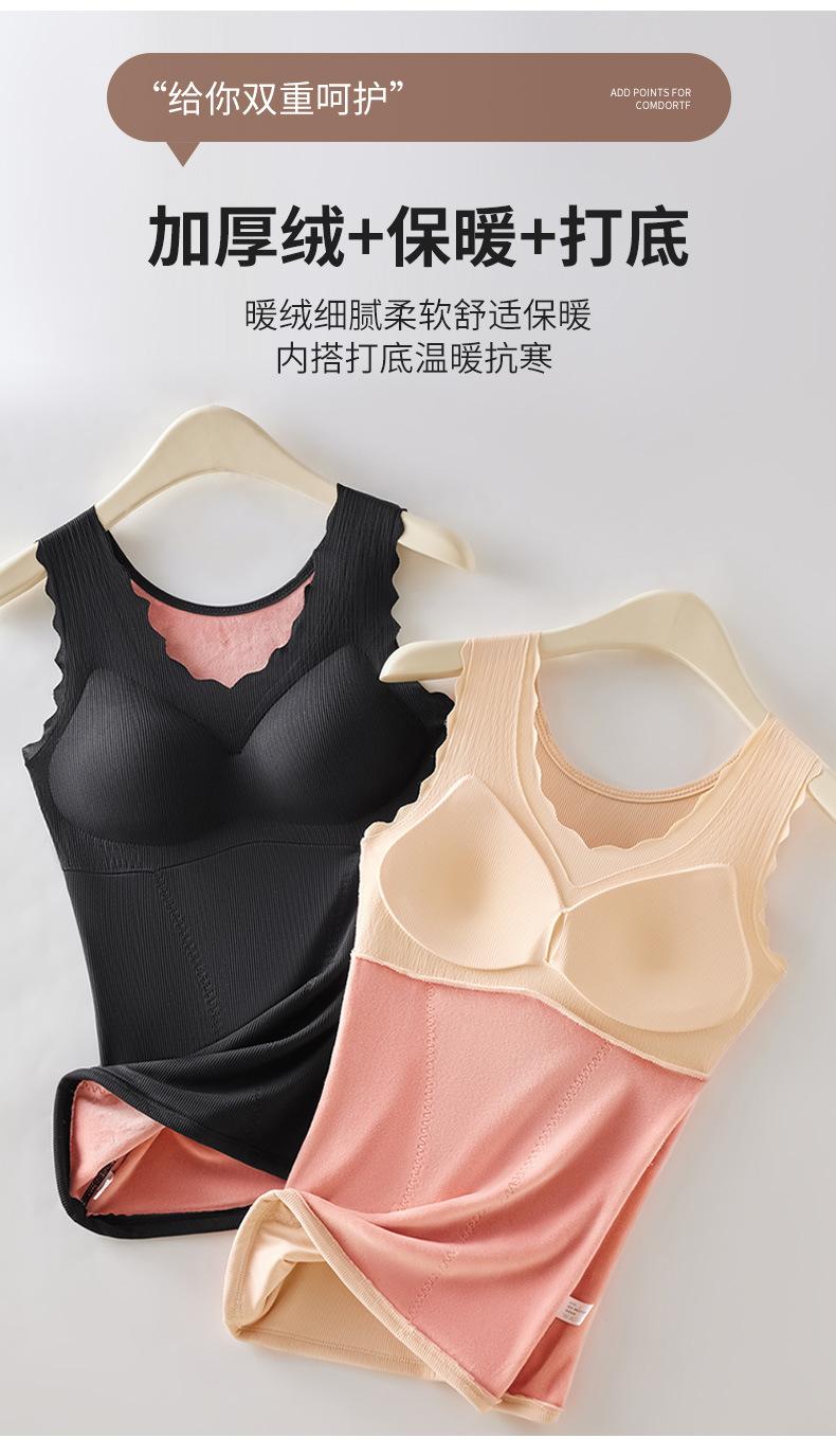 Chaleco Cálido Grueso con Forro Polar de Otoño e Invierno para Mujer con Cuello en V Ondulado, Almohadilla en el Pecho, Ajuste Delgado sin Marcas, Top Básico Adelgazante sin Mangas