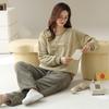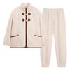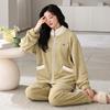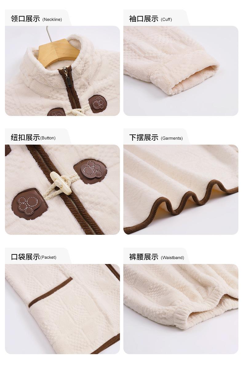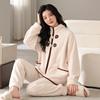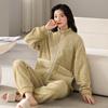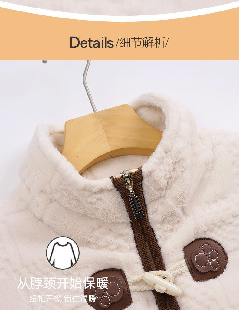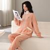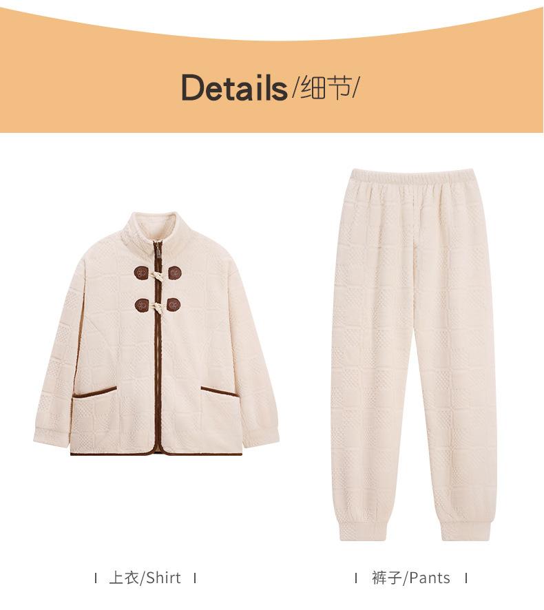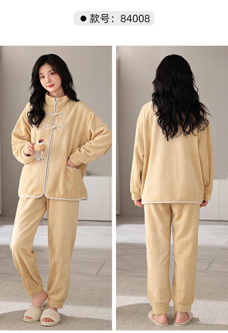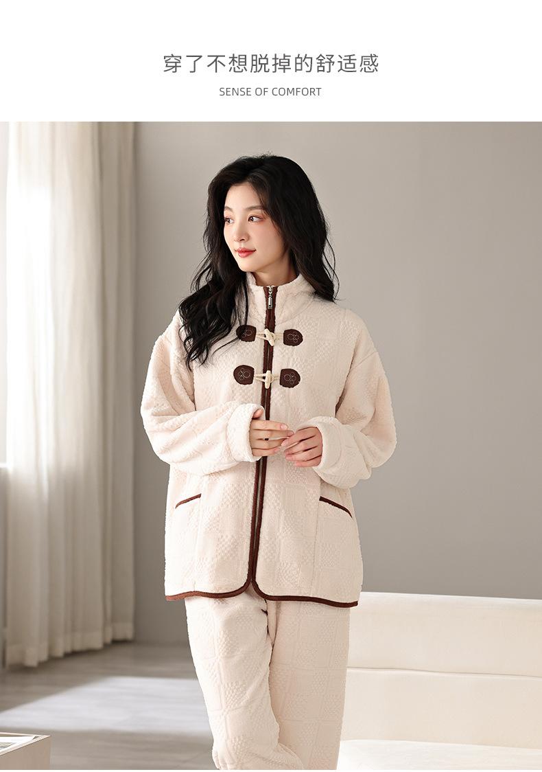 Pijamas de mujer de invierno de forro polar coral grueso con forro polar cálido para otoño e invierno, franela de estilo perezoso, retro con hebilla de cuernos, ropa para el hogar