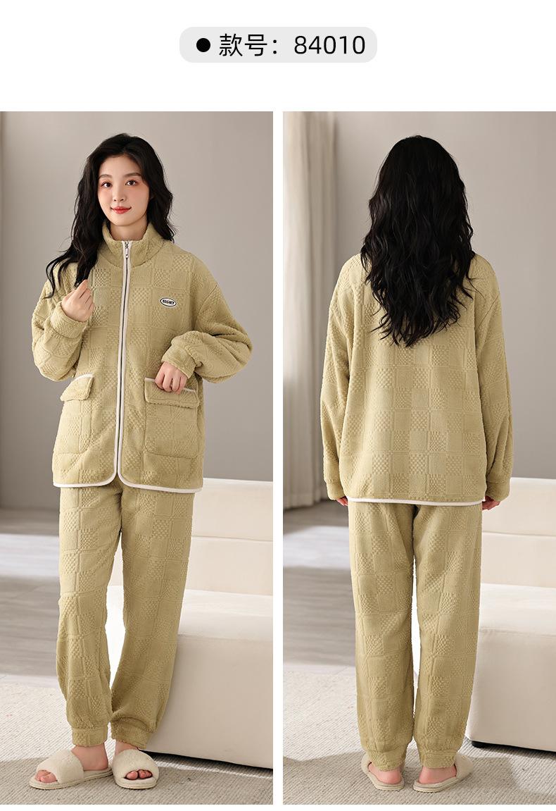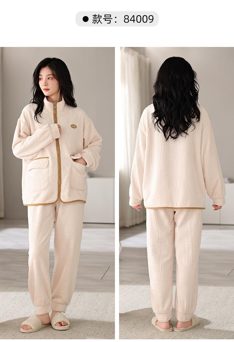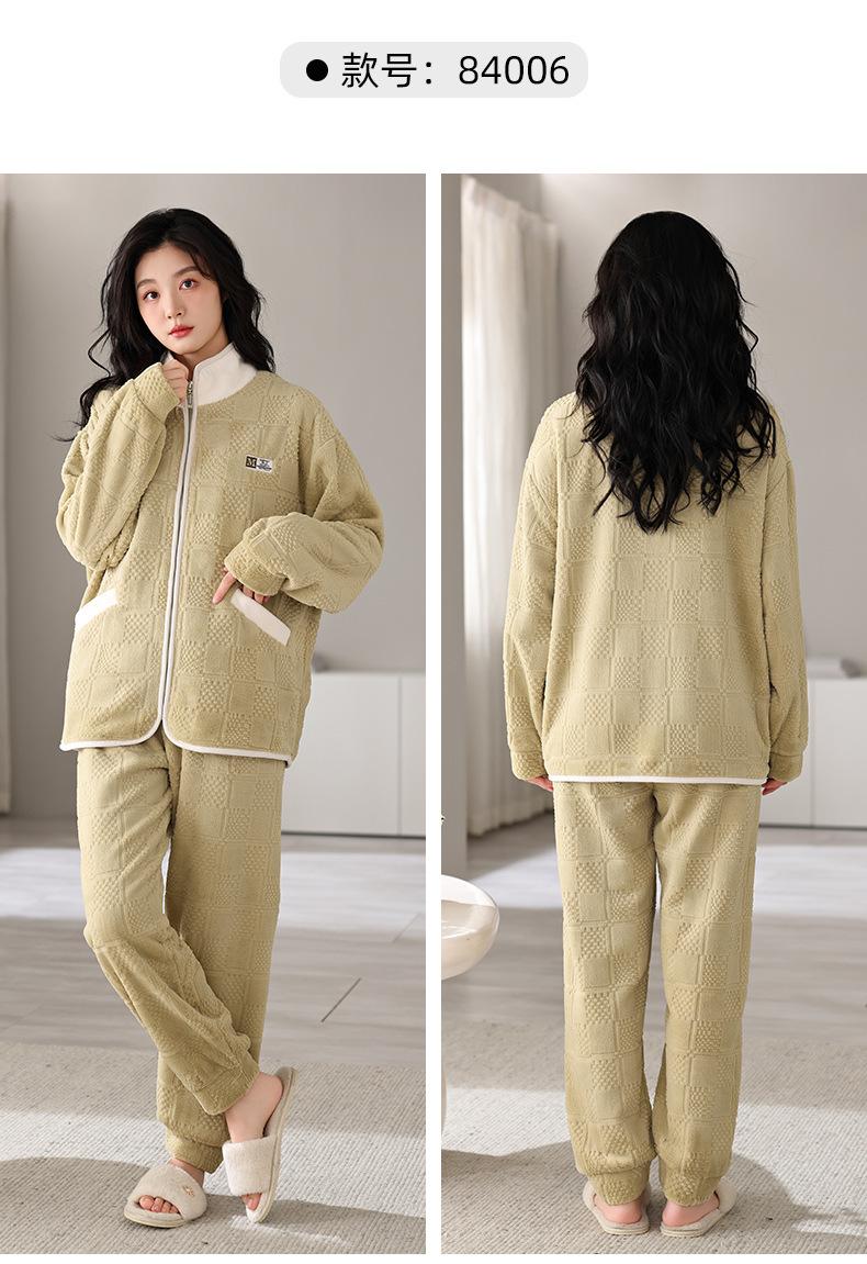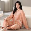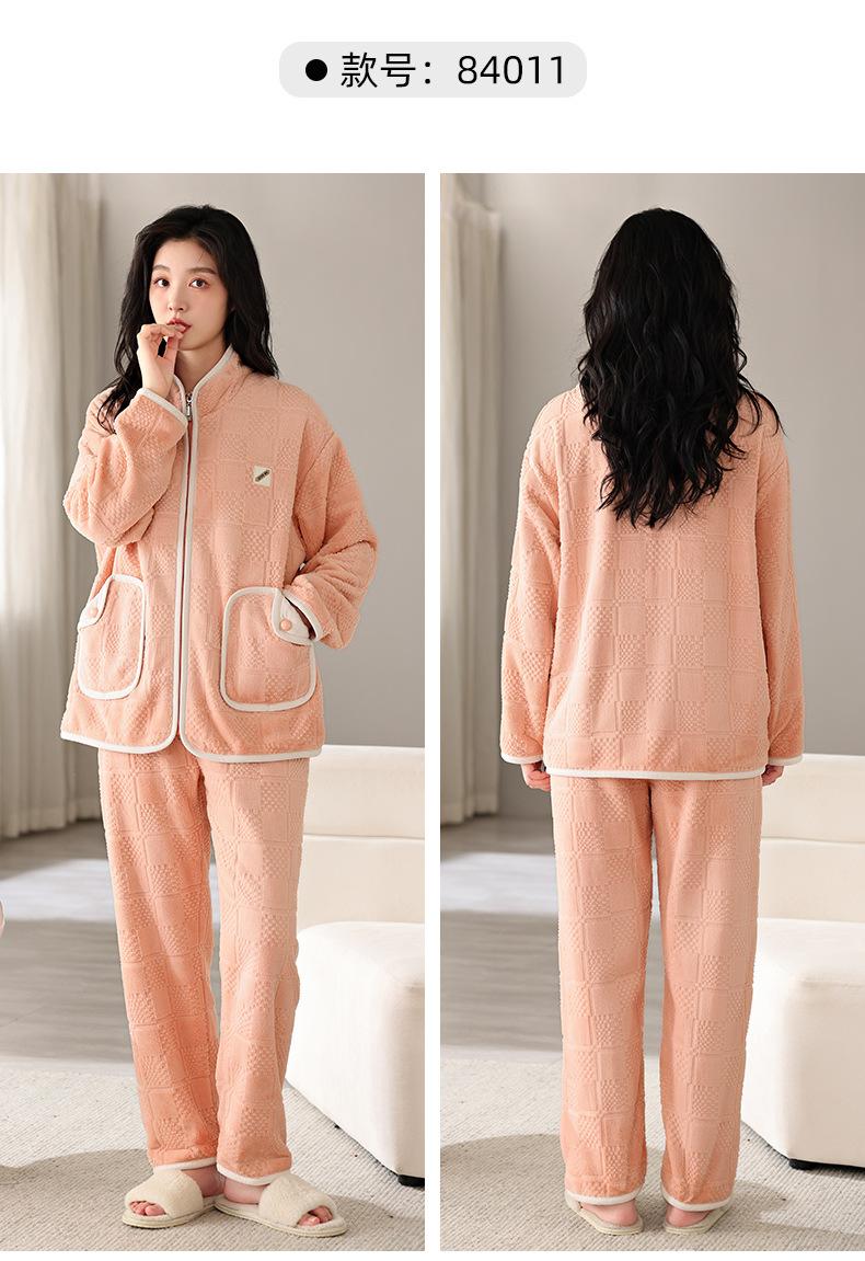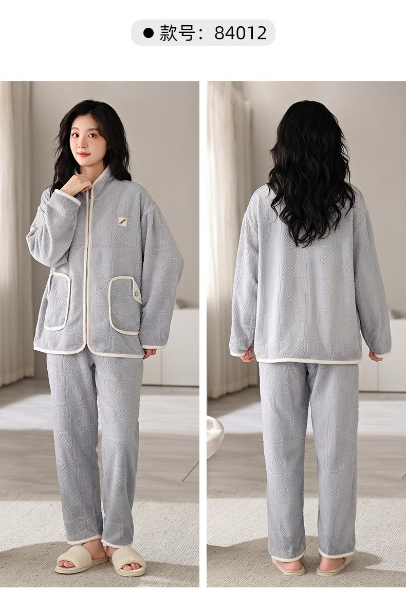 Pijamas de mujer de invierno de forro polar coral grueso con forro polar cálido para otoño e invierno, franela de estilo perezoso, retro con hebilla de cuernos, ropa para el hogar