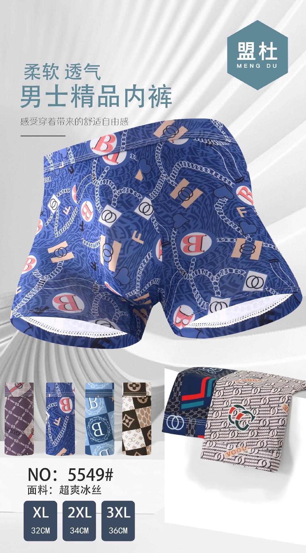 Nueva ropa interior Mengdu para hombre, maravillosa seda de hielo estampada, suave, transpirable y cómoda, agradable para la piel, bóxers de cuatro esquinas, colores mezclados 12