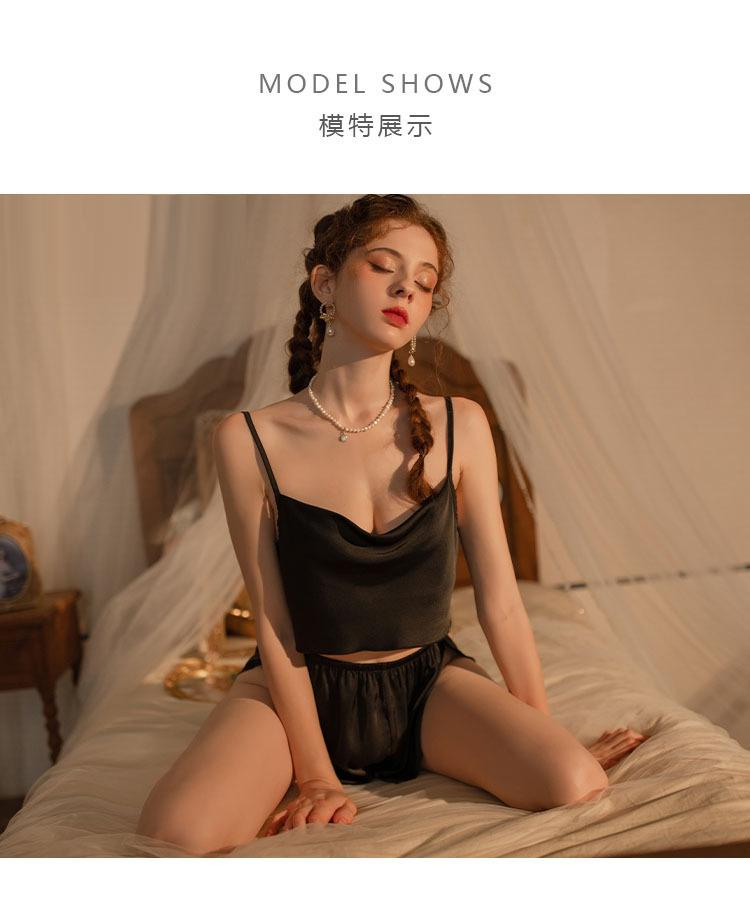 Nuevo Puro Deseo Viento Verano Seda de Hielo Camisón con Tirantes para Mujer Pijamas Sexy de Dos Piezas Ropa para el Hogar Traje Venta al por Mayor