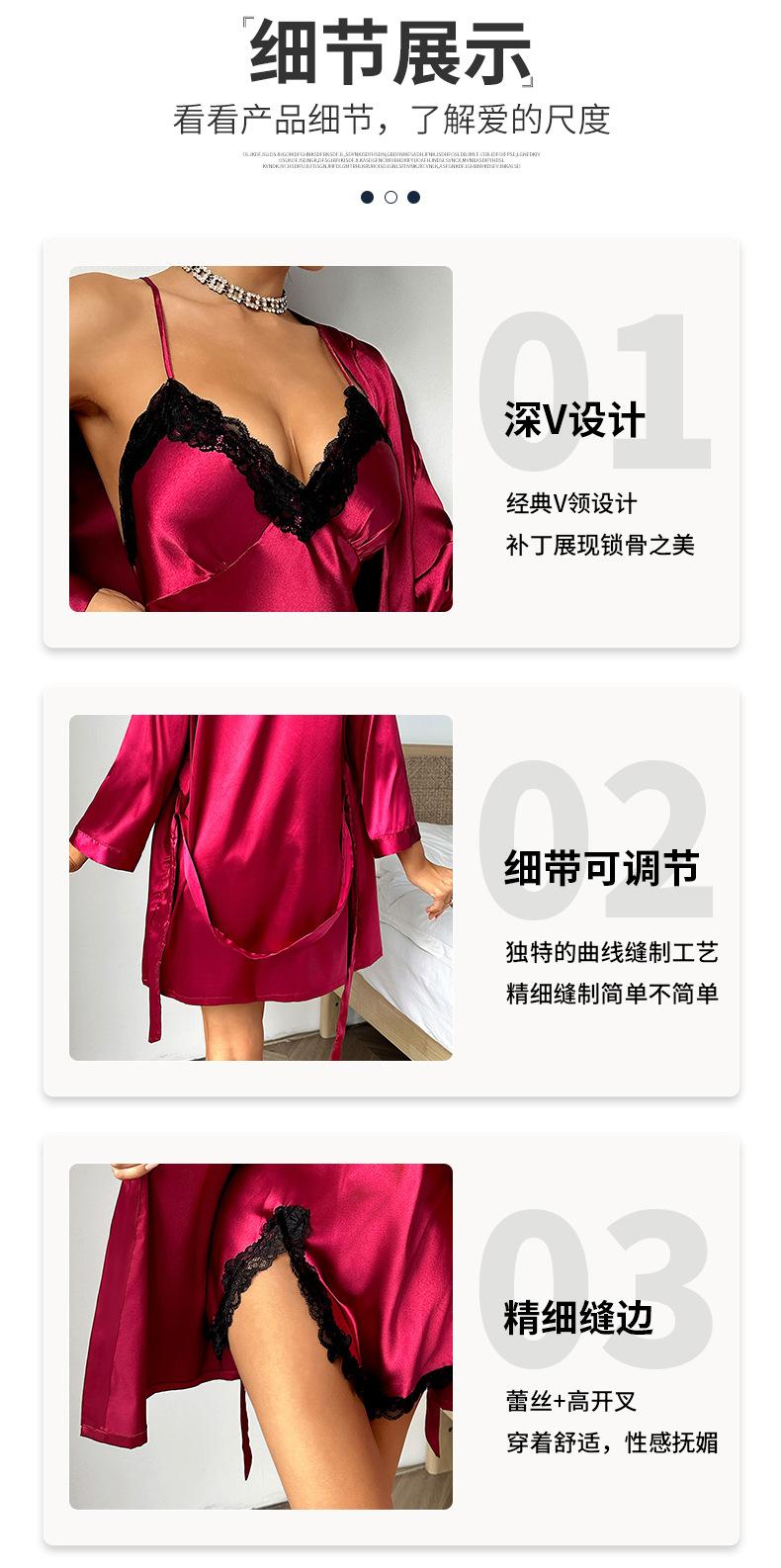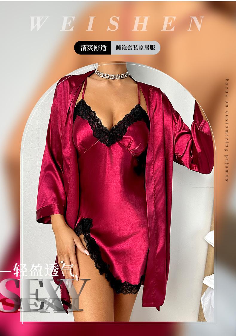 Pijamas de primavera y verano transfronterizos para mujer, camisón sexy de encaje de alta calidad, camisón de color liso, ropa de casa, bata de mañana para mujer