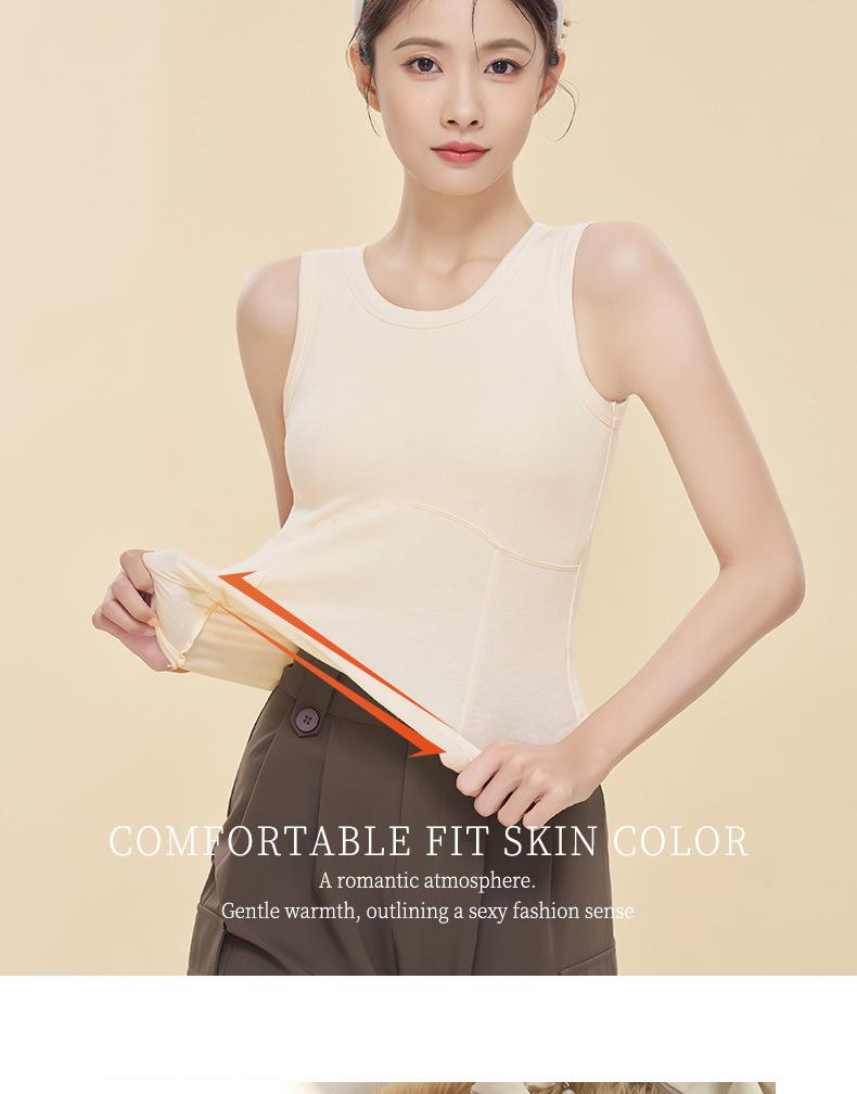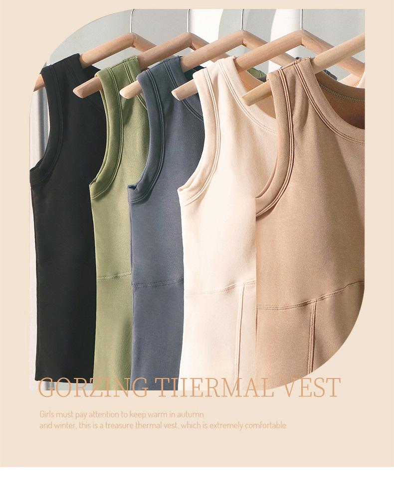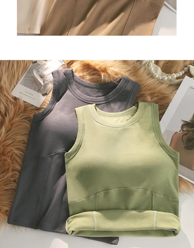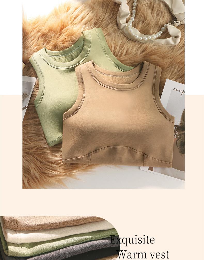 Chaleco Térmico Cepillado de Otoño e Invierno con Forro Polar Versátil Ajustado al Cuerpo Chaleco Grueso con Almohadilla en el Pecho Top para Mujer a la Moda Engrosado