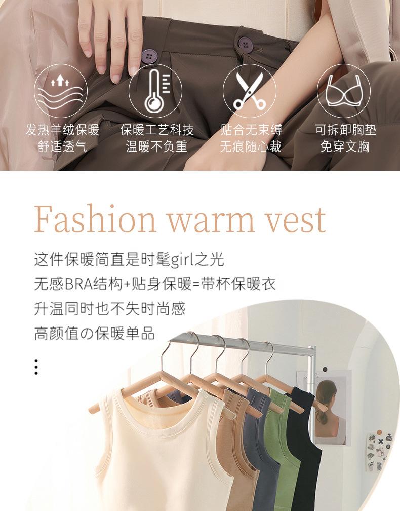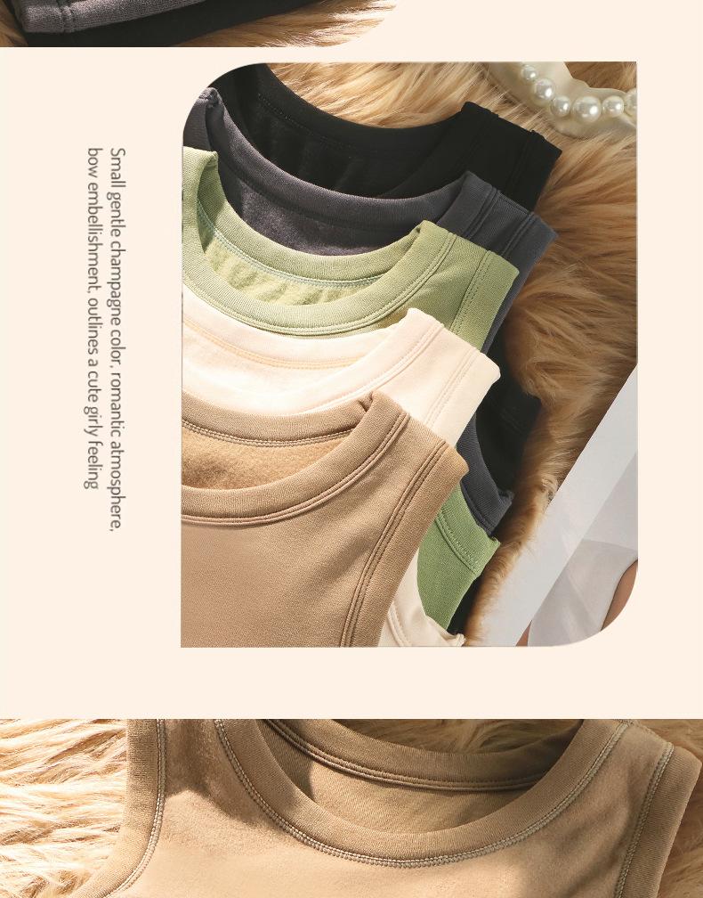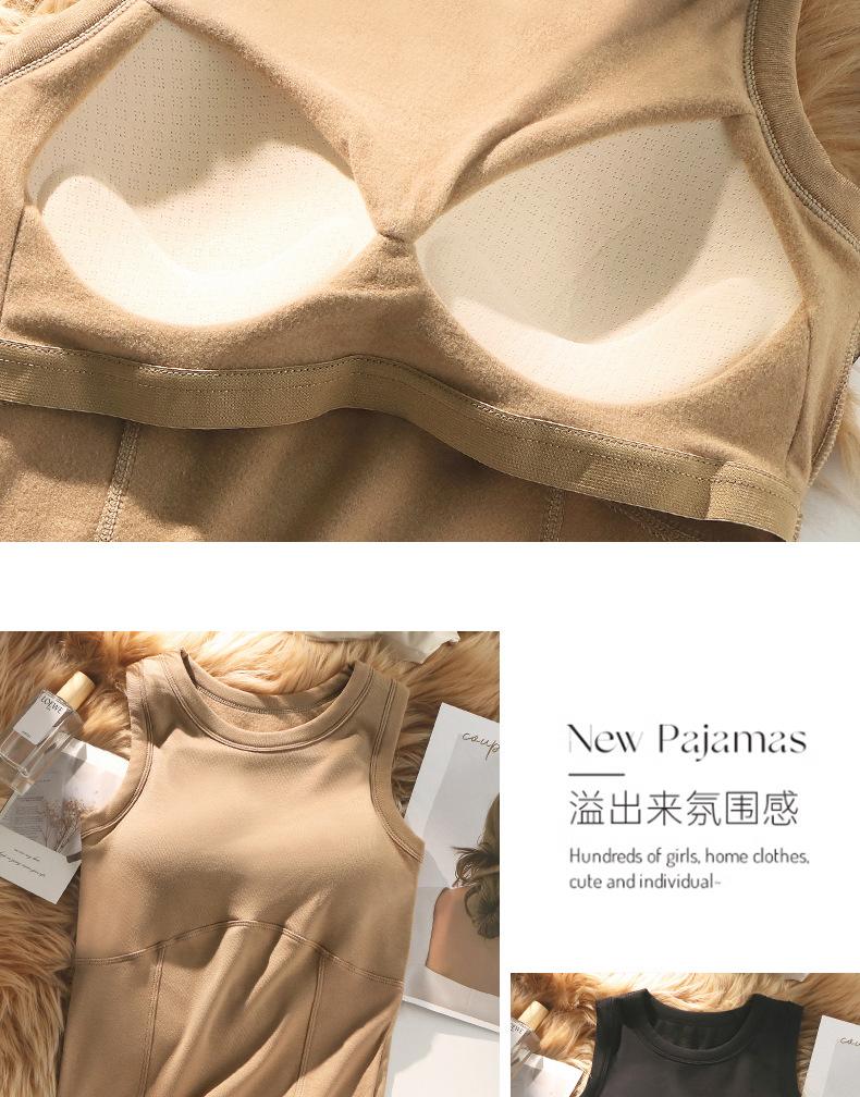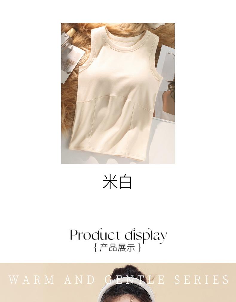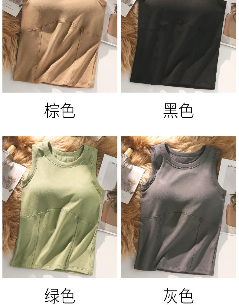 Chaleco Térmico Cepillado de Otoño e Invierno con Forro Polar Versátil Ajustado al Cuerpo Chaleco Grueso con Almohadilla en el Pecho Top para Mujer a la Moda Engrosado