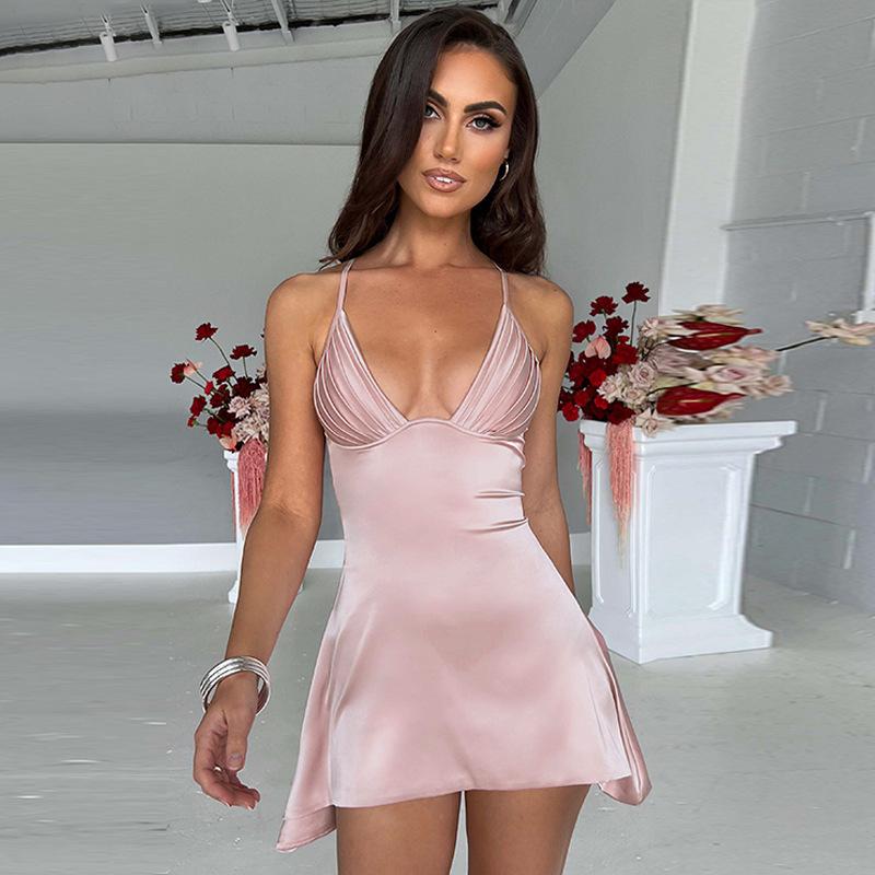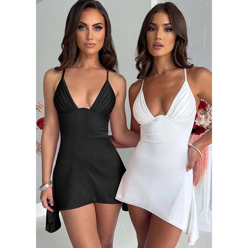 Ropa de Mujer Estilo Europeo y Americano 2024 Moda de Verano Sexy Cuello V Elegante Top de Tubo sin Espalda Vestido con Tirantes Exportación Venta al por Mayor