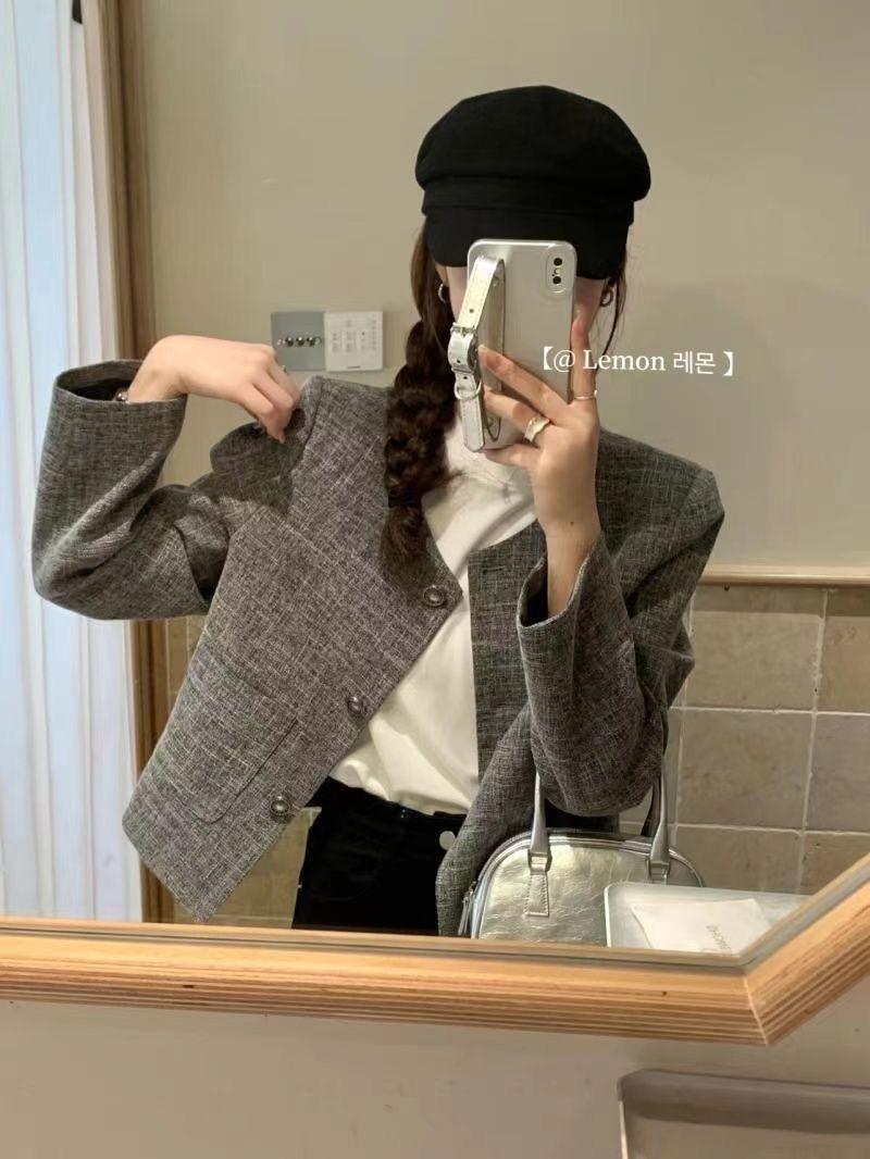 Dropshipping 2025 Otoño Nuevo Estilo Coreano Cárdigan Versátil de Manga Larga con Forro Chaqueta Corta para Mujer Trendy