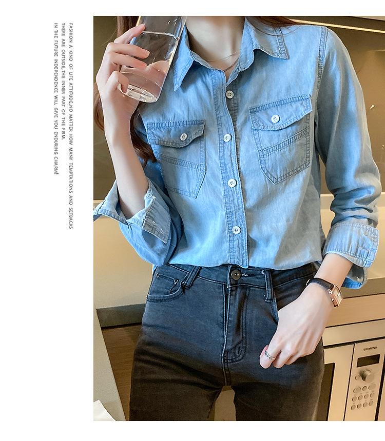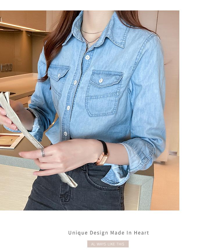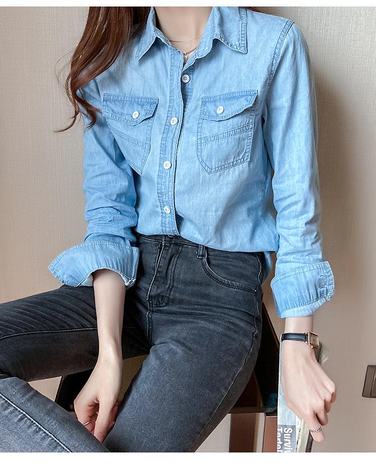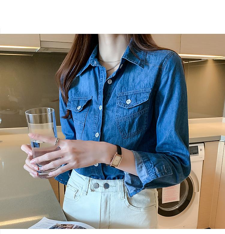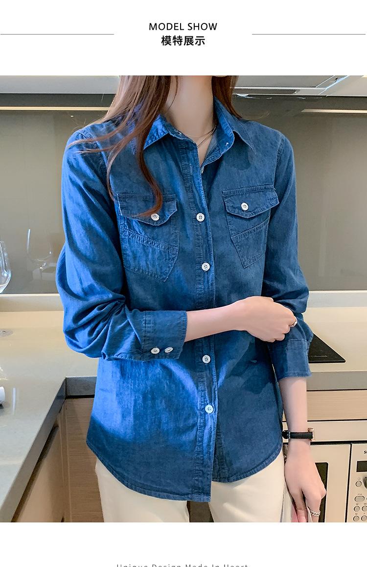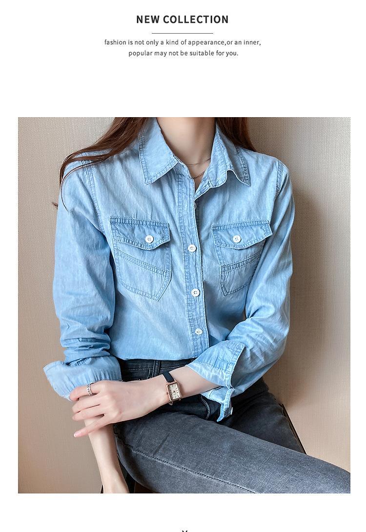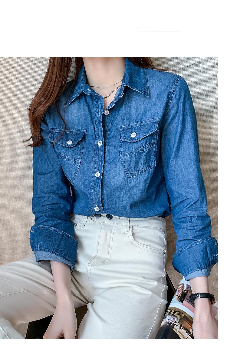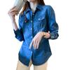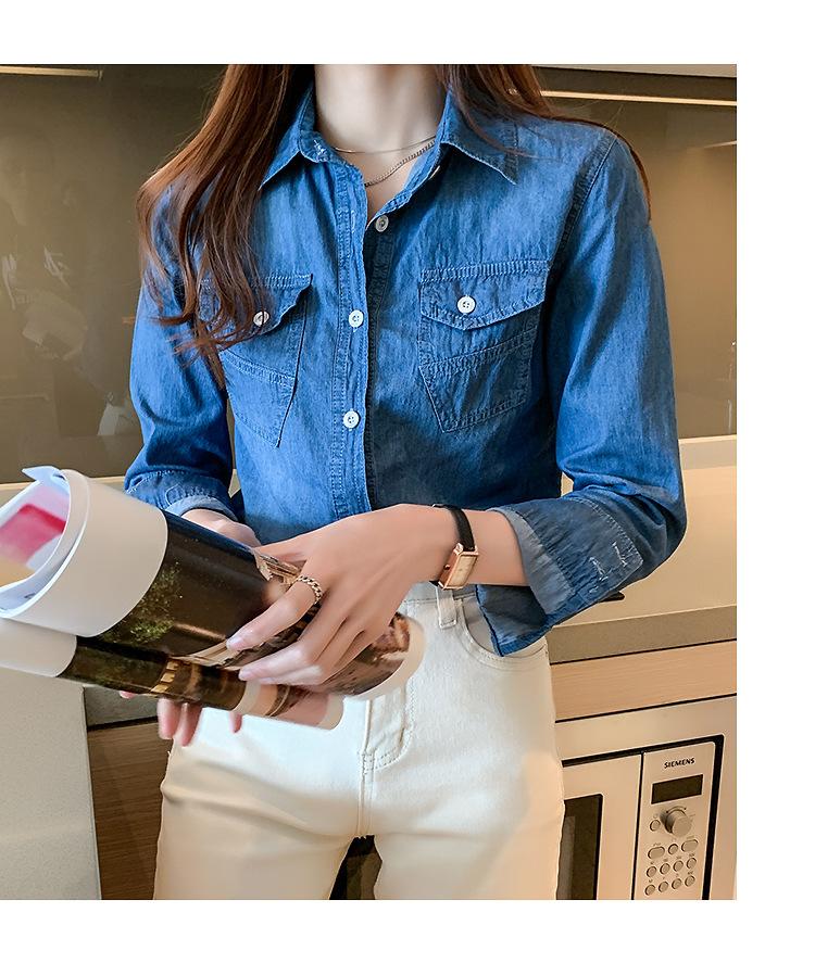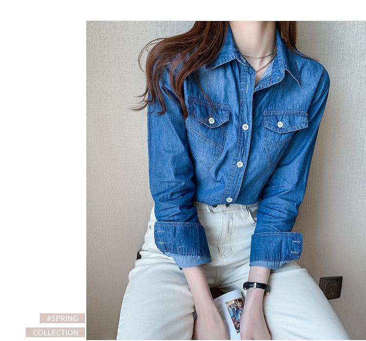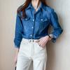 Camisa de mezclilla de tiro real para mujer de manga larga primavera y otoño 2024 nueva top delgado chaqueta de longitud media camisa exterior