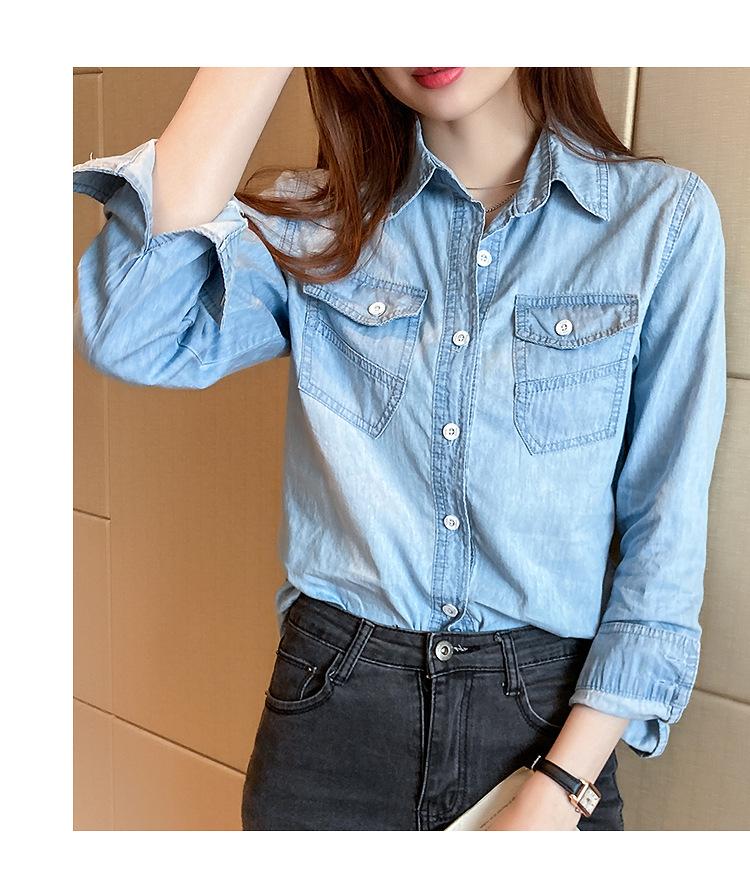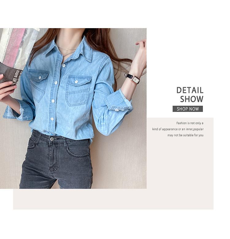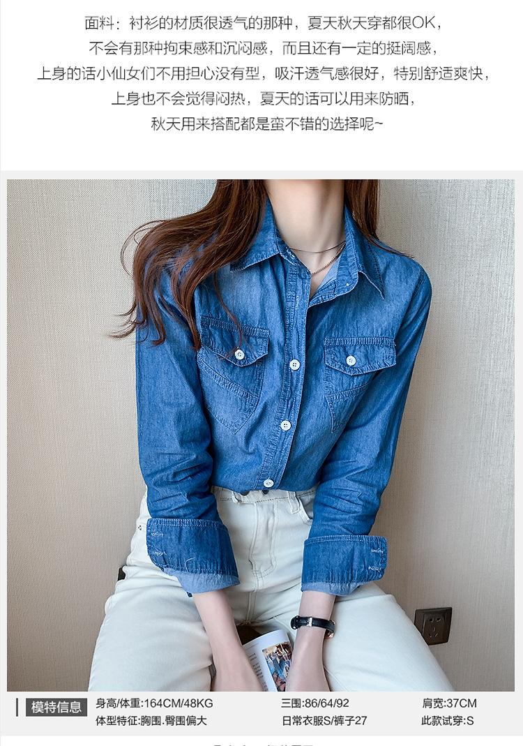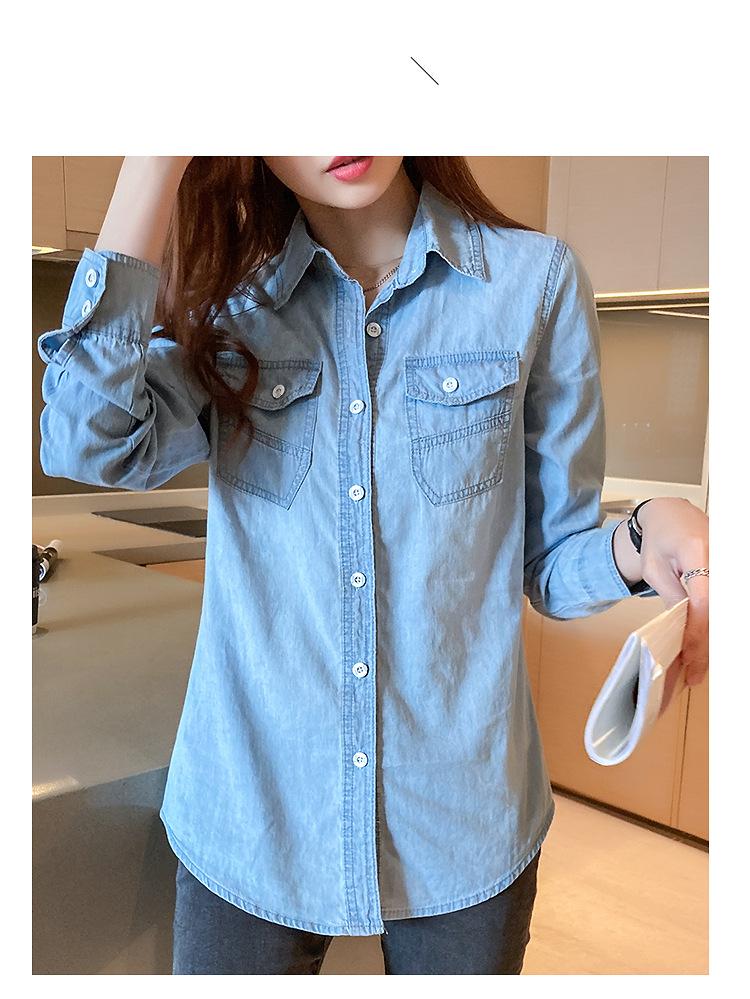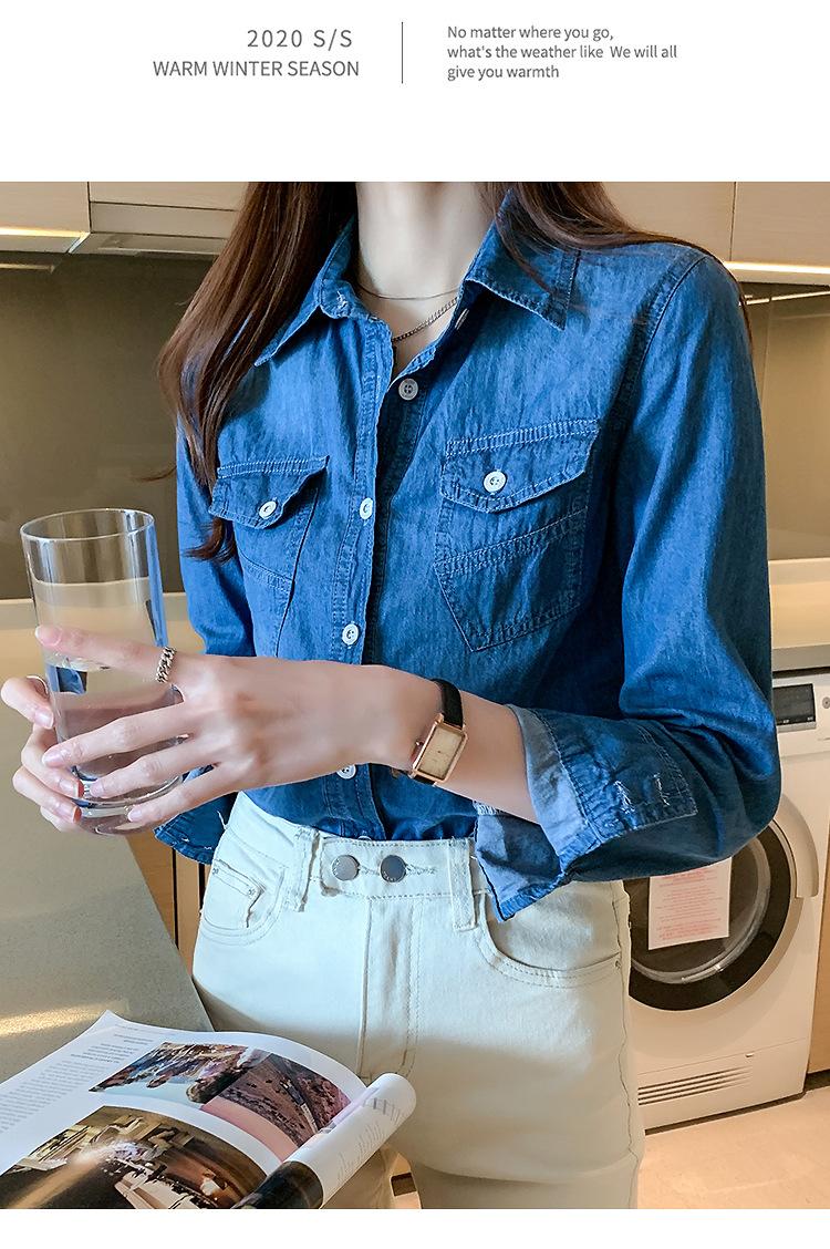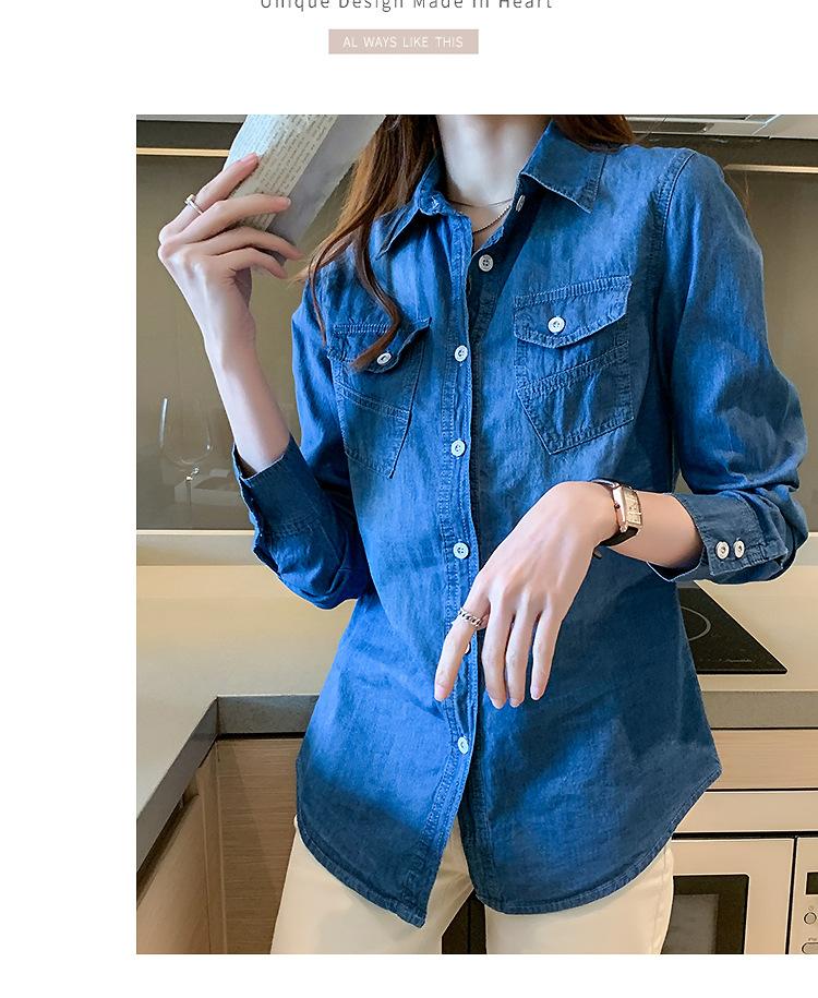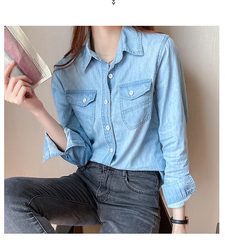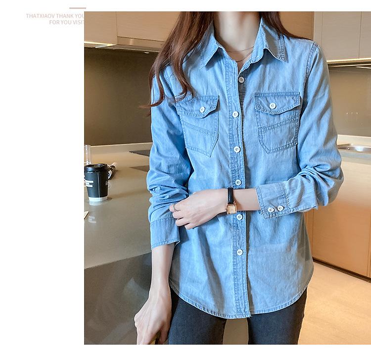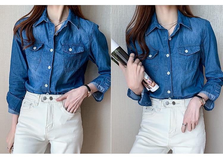 Camisa de mezclilla de tiro real para mujer de manga larga primavera y otoño 2024 nueva top delgado chaqueta de longitud media camisa exterior
