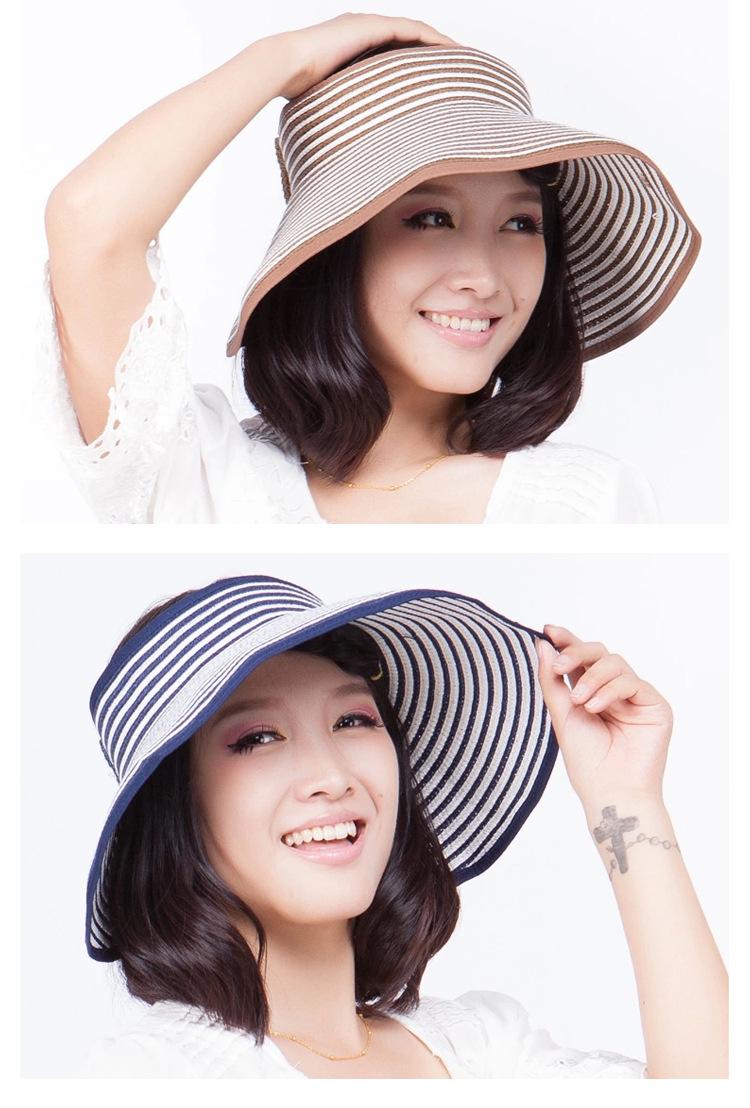 Sombrero de Paja Grande Plegable Protección UV Sombrero de Playa Sombrero de Copa Vacía para Mujer Sombrero de Verano para Bicicleta Protector Solar