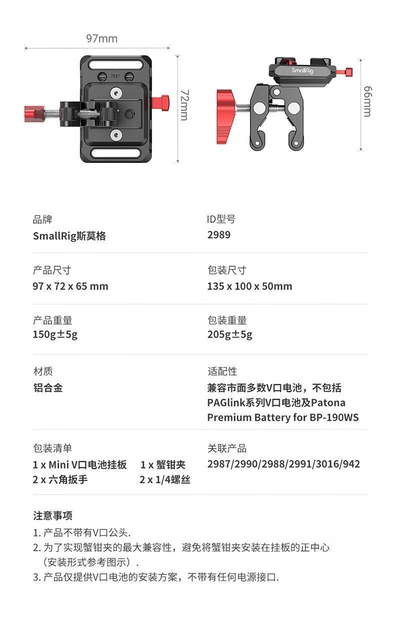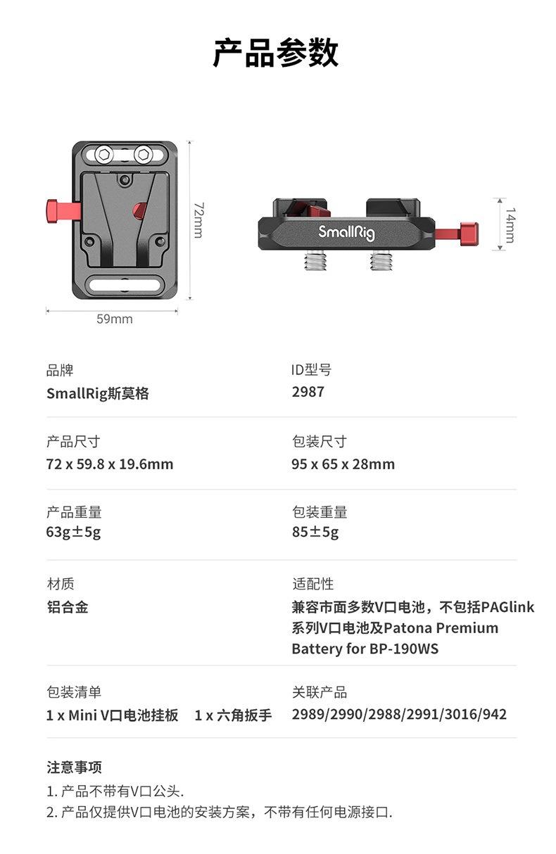 Humo (Plataforma pequeña) Placa para colgar batería con puerto en V, adecuada para accesorios de cámara y fotografía, para colgar batería.