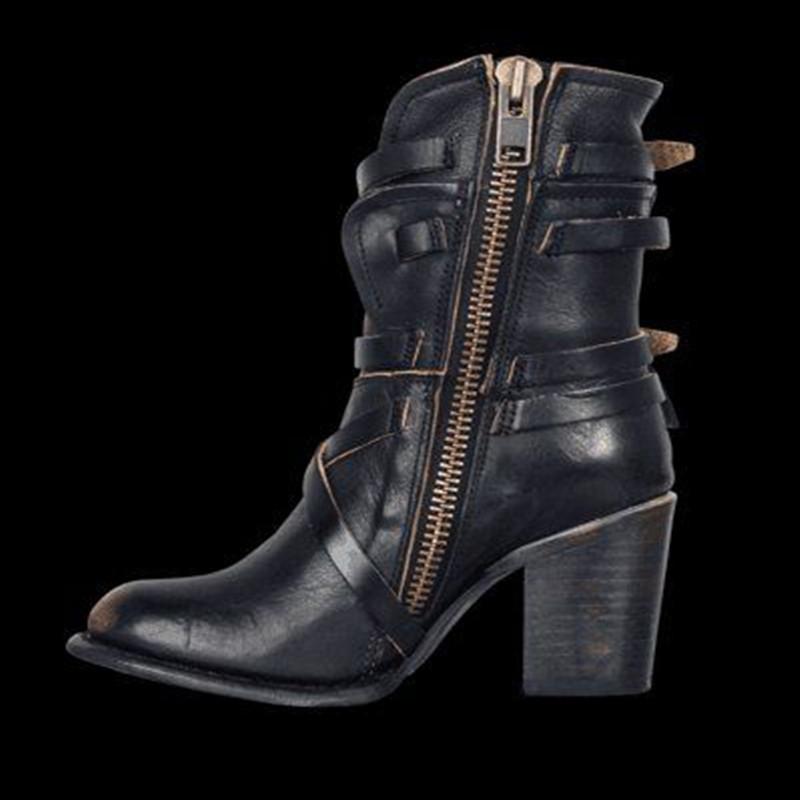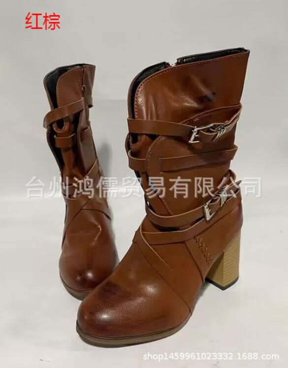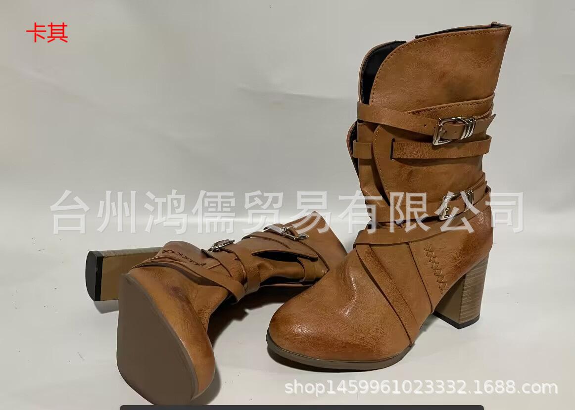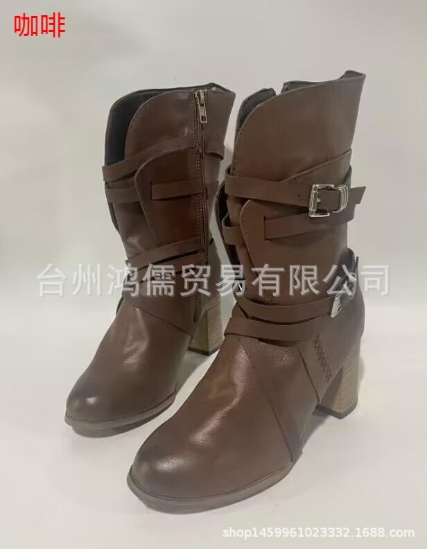 Comercio Exterior Talla Grande 2021 Nuevos Zapatos de Mujer de Tacón Medio Españoles Botas Largas Botas de Cuero de Mujer Zapatos de Mujer