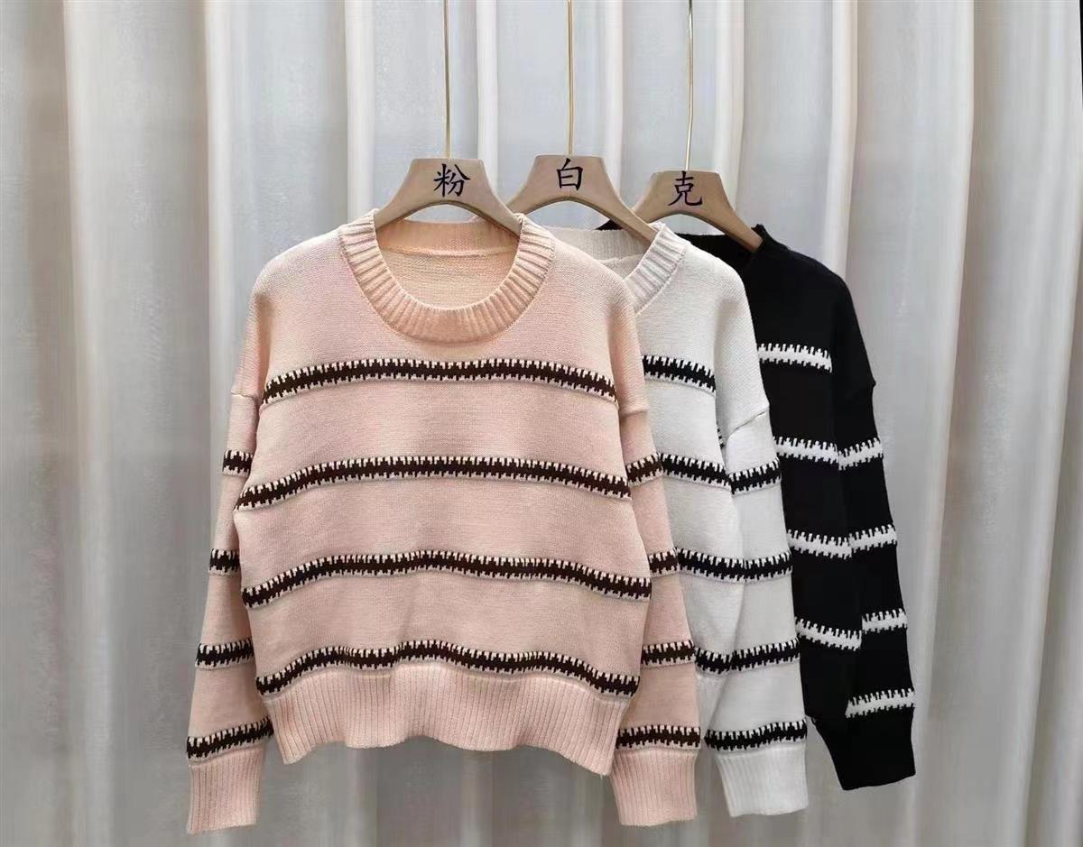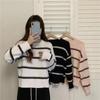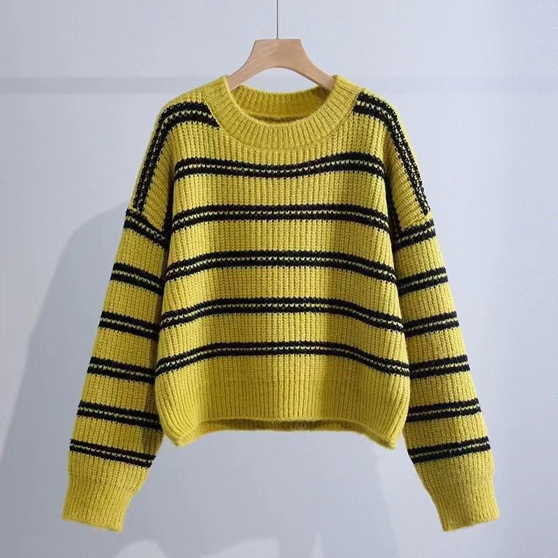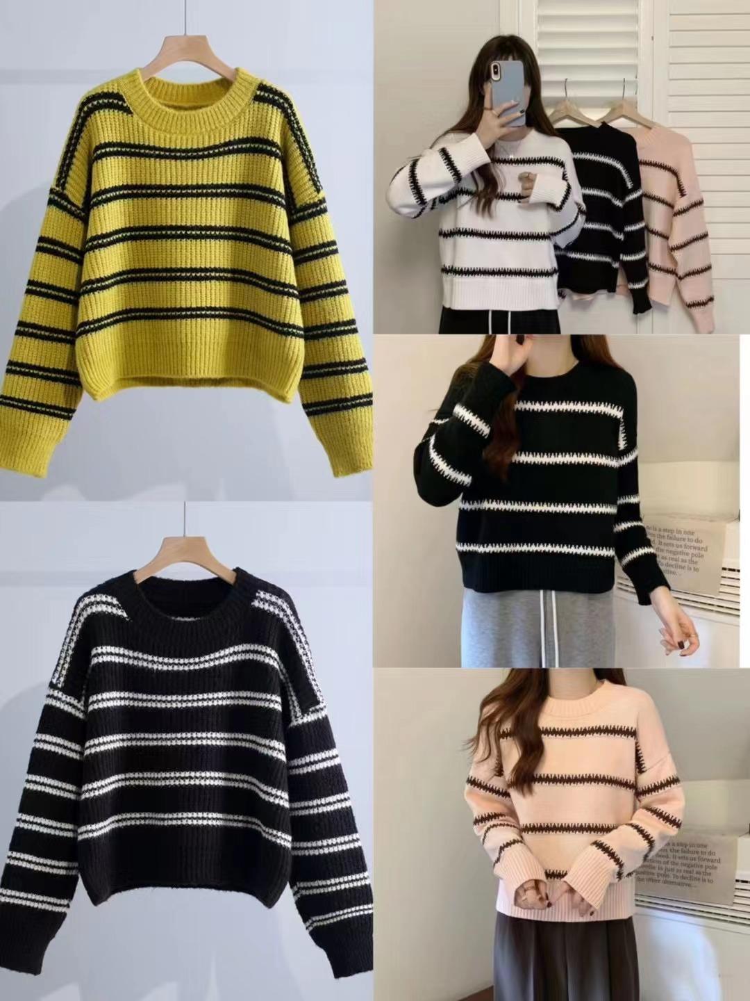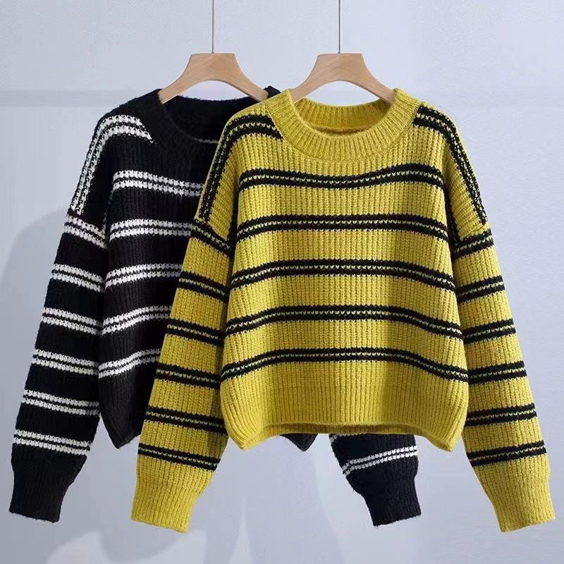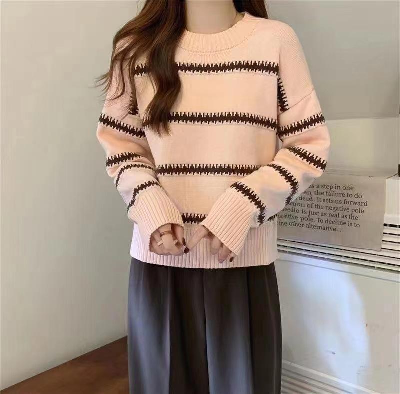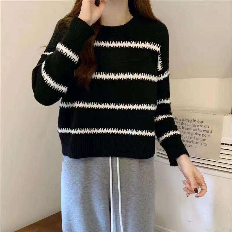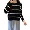 Nuevo Suéter de Cuello Redondo y Cuello Alto para Otoño e Invierno 2023, Estilo Retro y Holgado a Rayas para Combinar con Todo, Suéter para Mujer