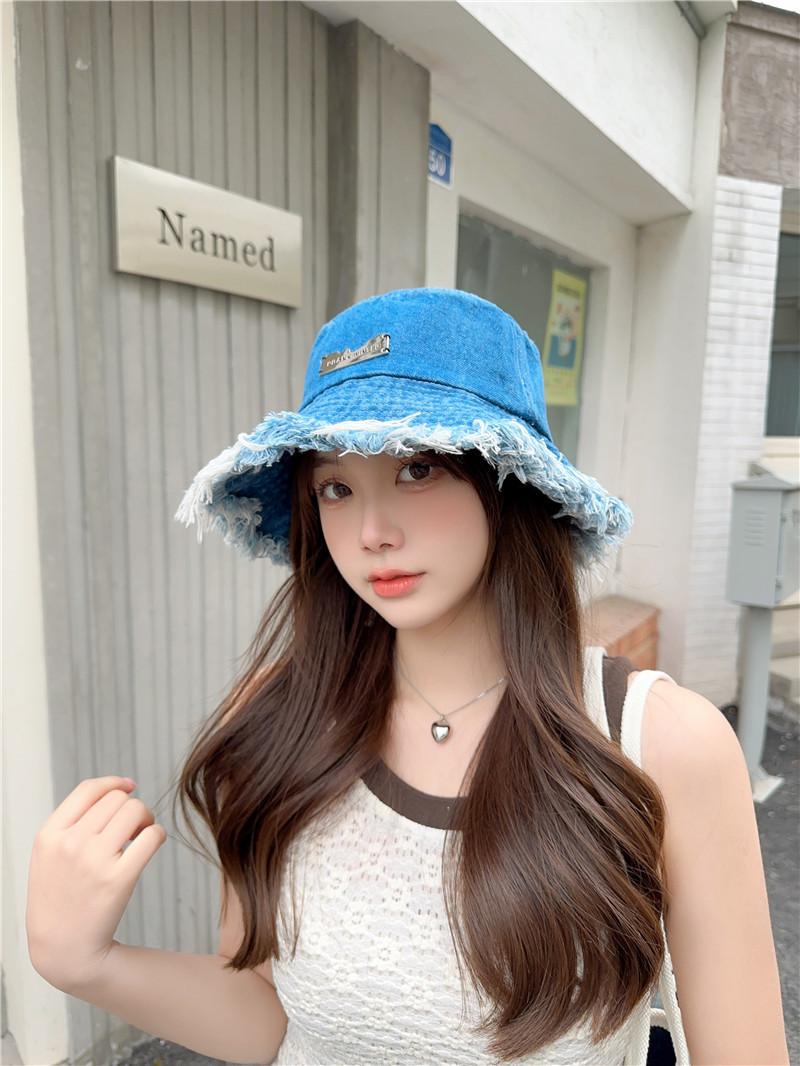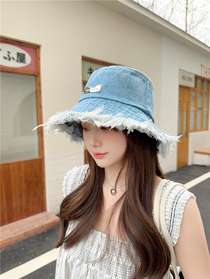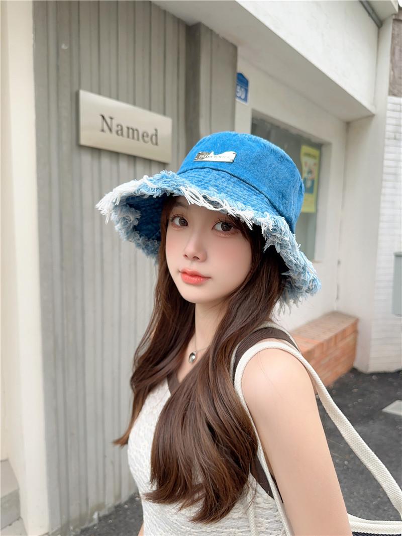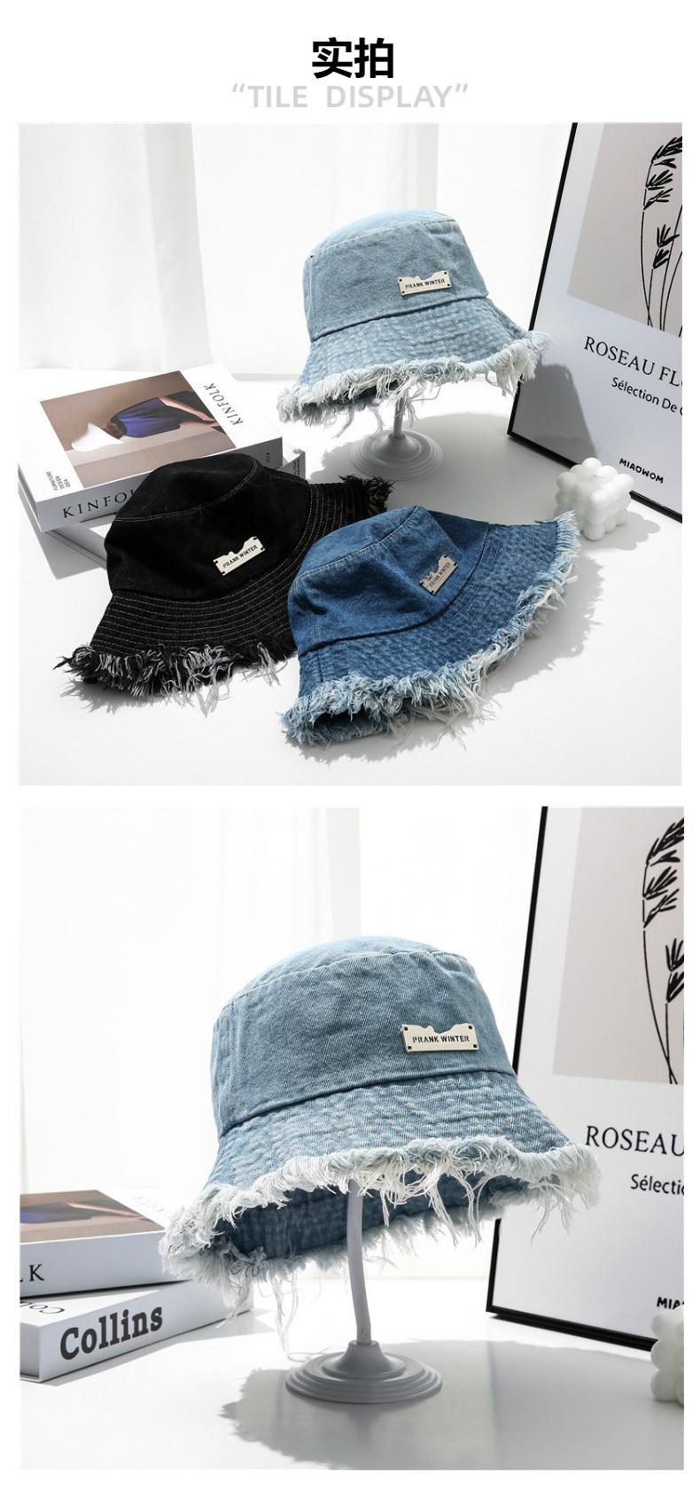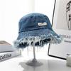 Sombrero de mezclilla vieja lavada para mujer de principios de otoño, sombrero de pescador informal con ala grande y protección solar de nicho.