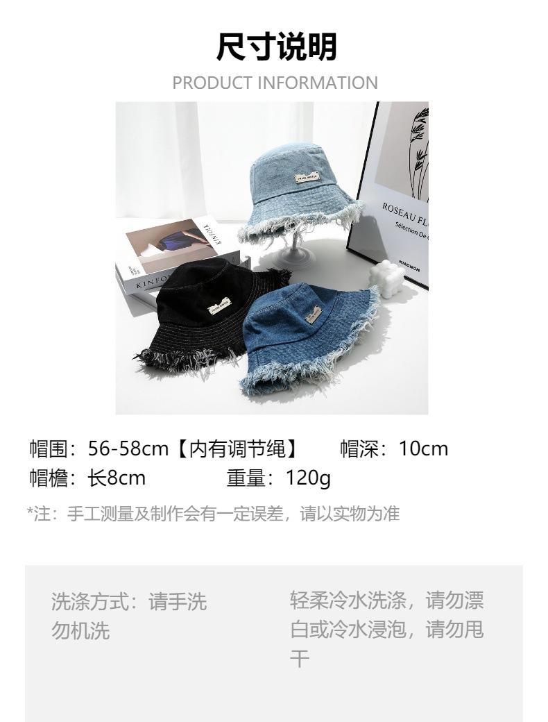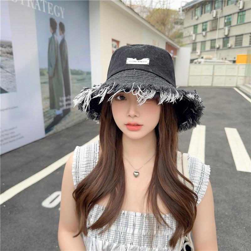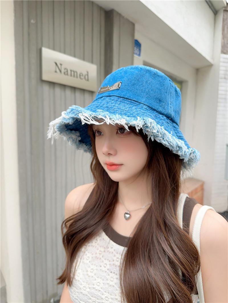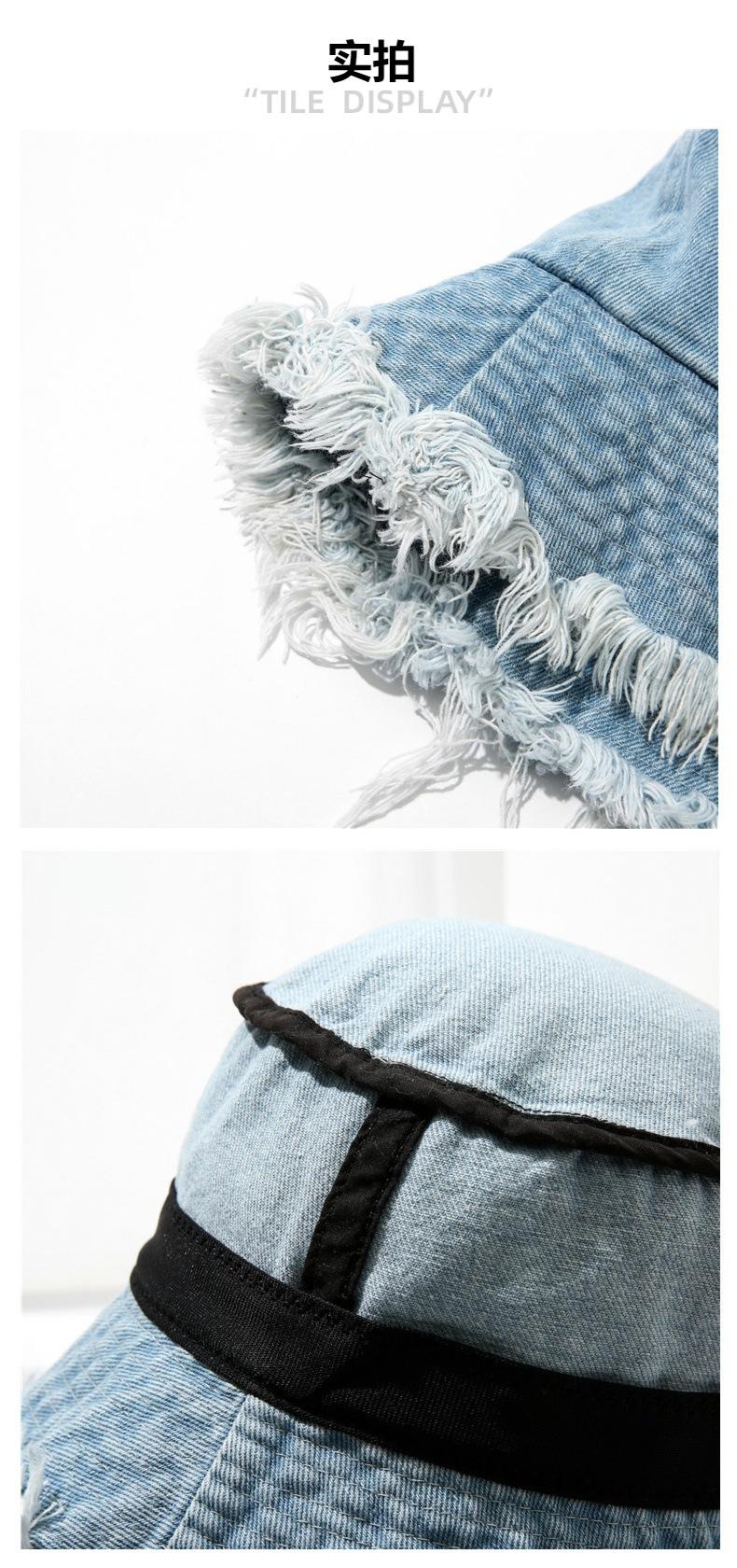 Sombrero de mezclilla vieja lavada para mujer de principios de otoño, sombrero de pescador informal con ala grande y protección solar de nicho.