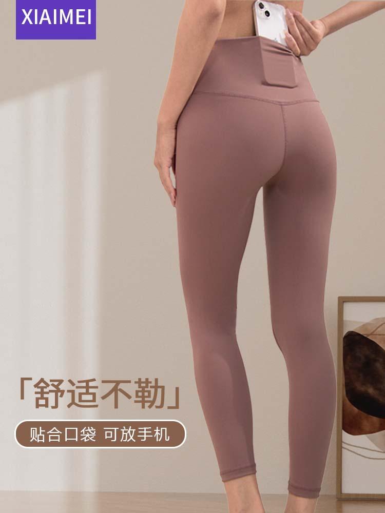 Pantalones de Yoga de Cintura Alta para Mujer con Bolsillos Traseros, Levanta Glúteos, Ajustados, Leggings Deportivos de 9 Puntos para Correr, Secado Rápido, Fitness, Verano