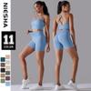 En stock, ropa deportiva ajustada de yoga de alta elasticidad con espalda hermosa de color sólido de punto sin costuras europea y americana, traje para correr y fitness para mujeres.